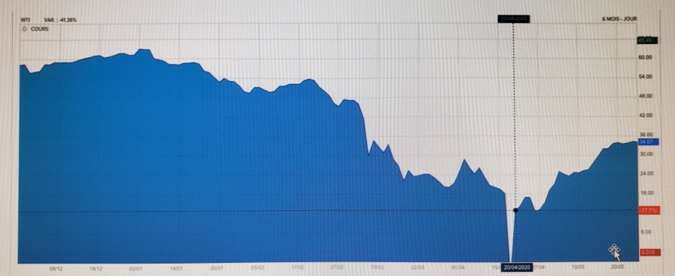 Cette définition montre bien qu’à échéance, si le sous-jacent n’est pas disponible, cela posera un réel problème. Si le cours du contrat à terme, qui est fluctuant sur les marchés financiers se retrouve à une valeur négative, cela occasionnera un carambolage dans le secteur pétrolier. Nous le verrons dans la suite, en ce qui concerne la crise actuelle.