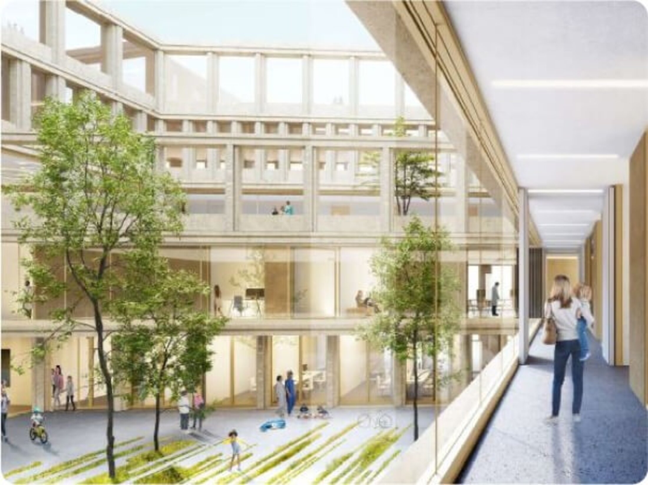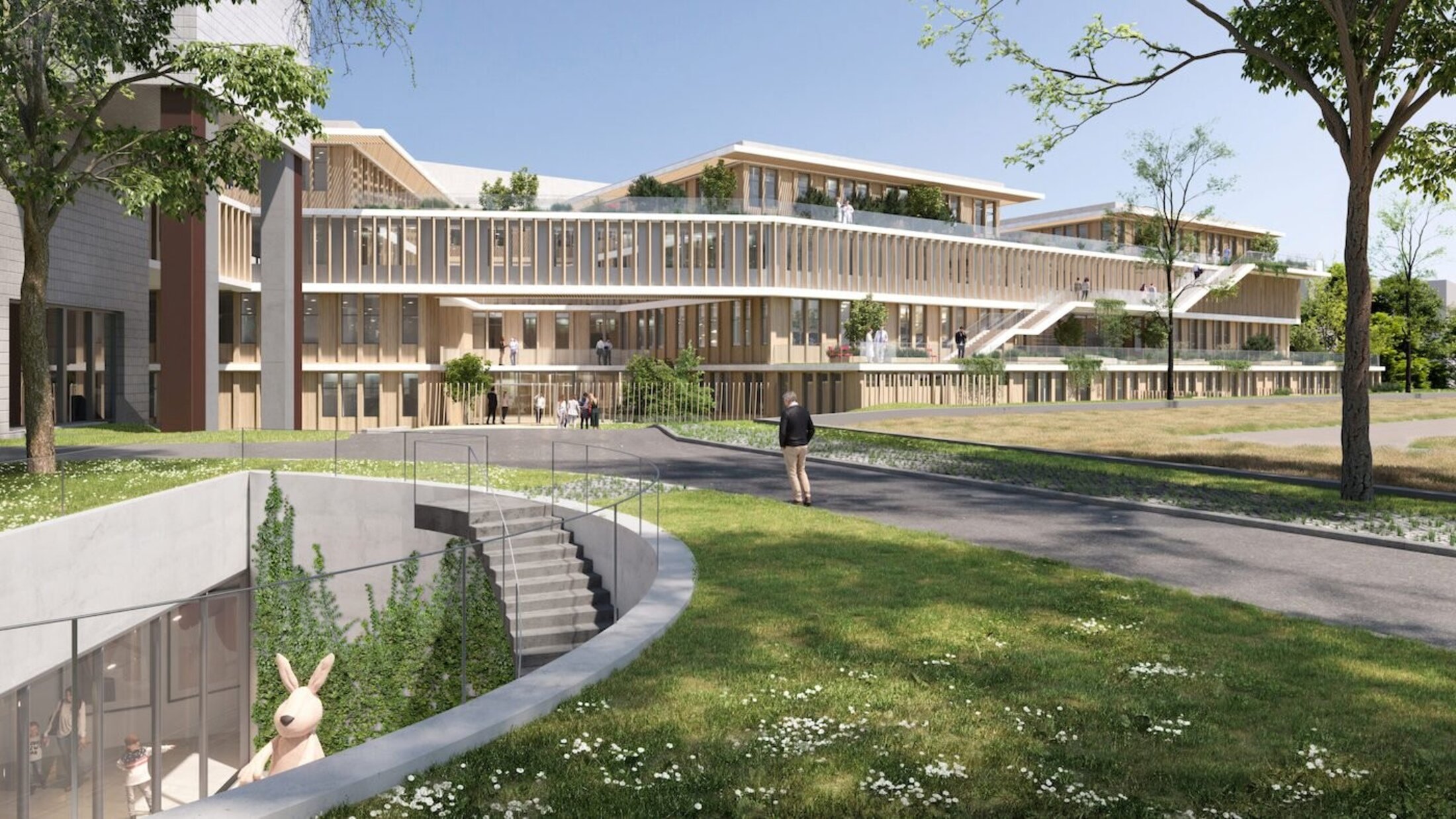 Le bâtiment dédié à l’ICE, dont l’architecture a été pensée pour les jeunes patients et leurs familles, sera construit sur le campus de l’hôpital Robert-Debré AP-HP et devrait être opérationnel en 2027. La conception du nouveau bâtiment promet de rassembler unités de soins, plateformes de recherche, auditorium et espaces collaboratifs pour les start-ups et associations. Ce projet architectural, financé en collaboration avec l’État et les partenaires privés, vise à offrir un environnement innovant, durable et inclusif aux usagers en parcours de soin, et autres cobayes sources de données. C’est l’agence d’architecture AIA Life Designers qui a remporté le concours, avec un projet axé sur la capacité de flexibilité et d’évolutivité du bâtiment ainsi que sur la cohérence des parcours à l’échelle du site. « Protégé par une coque de peau minérale qui lui donne son identité et favorise le dialogue avec le boulevard périphérique parisien, le projet imaginé par AIA met en scène un parcours apaisé pour les enfants et à ceux qui les accompagnent. La séquence d’arrivée est pensée pour atténuer le stress inhérent à toute visite à l’hôpital. On crée ici un univers intérieur fantastique, détaché des codes de l’architecture du soin et propre à stimuler l’imaginaire à travers un atrium bioclimatique. La nature, mise au cœur du programme, se fait vecteur de bien-être pour l’ensemble des usagers. ».