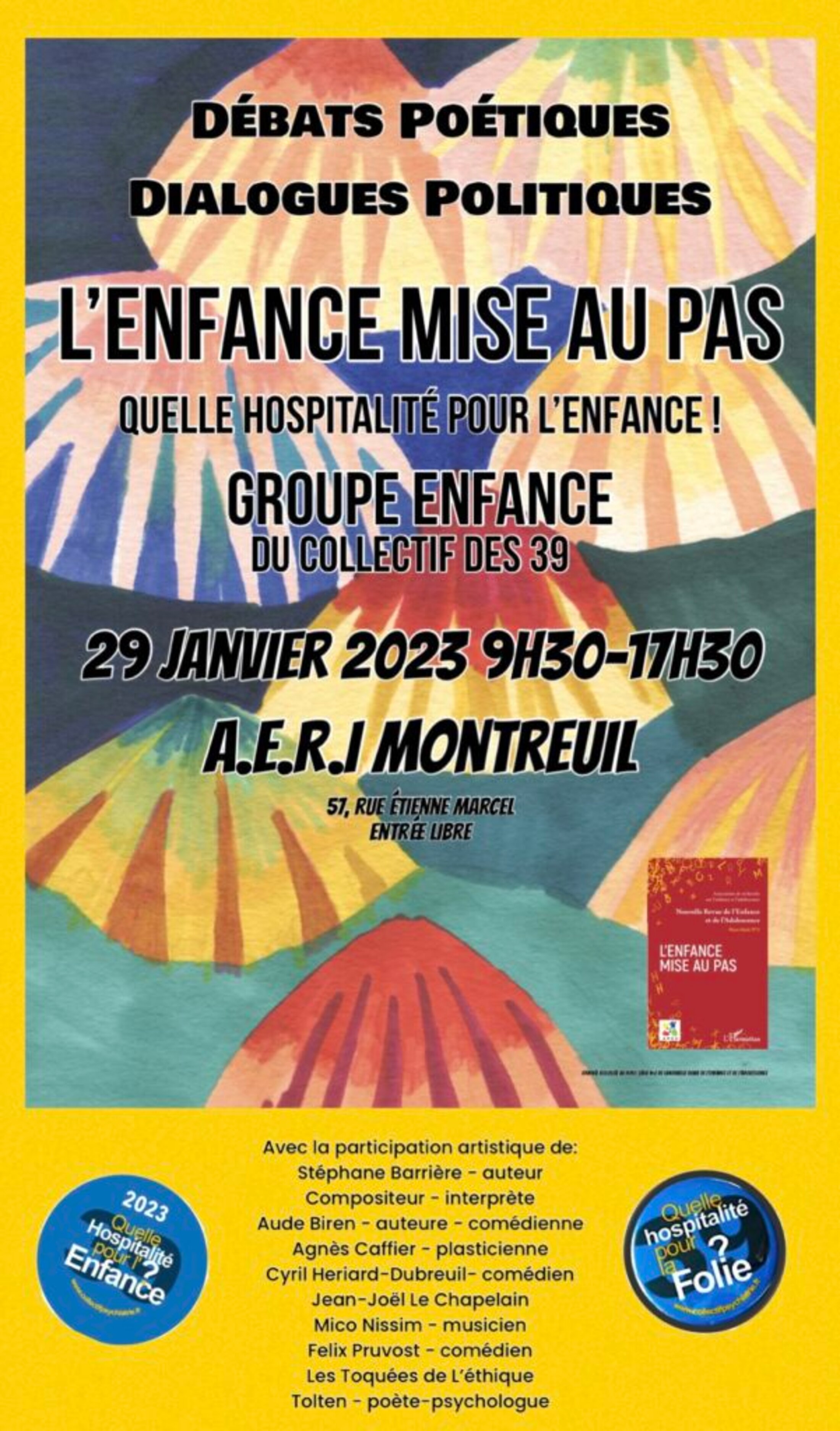 A la suite de la publication de l’ouvrage "L’enfance mise au pas", le Groupe Enfance du Collectif des 39 organisait ce dimanche 29 janvier à l’AERI à Montreuil une journée de rencontre, afin de se questionner sur l'évolution et l'état des soins psychiques apportés aux enfants. De fait, "depuis sept ans, le Groupe Enfance où se réunissent soignants, travailleurs sociaux, universitaires, s’élève contre la panoplie de lois, de décrets et autres textes administratifs et réglementaires qui ont complètement modifié depuis 2002 le dispositif de santé que nous enviait le monde entier. Au nom d’une soi-disant Science et d’une vraie conception marchande de la santé, table rase a été faite d’une réflexion et d’un savoir centenaire, nés sur les décombres de la barbarie des guerres mondiales. Ce déni de l’importance de la parole, du langage et de l’histoire de chacun dans le développement du « petit homme » a imposé une conception neuro-machinique, régressive, nous ramenant des siècles en arrière. Les professionnels ne peuvent plus exercer leur métier dans l’intérêt des enfants, mais doivent se soumettre à des protocoles et à de bonnes recommandations qui imposent des grilles chiffrées".