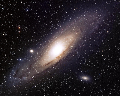 Andromède (qu’on appelle aussi M31) est la galaxie la plus proche de la nôtre, située à environ 2,5 millions d’années-lumière, elle est très semblable à notre voie lactée, on dit souvent que ces deux galaxies sont des jumelles. Et toutes les deux possèdent des petites galaxies naines qui sont liées gravitationnellement avec leur galaxie géante.