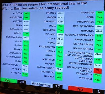 Foto del tablero de votación, 23 de julio del 2014, Consejo de Derechos Humanos
