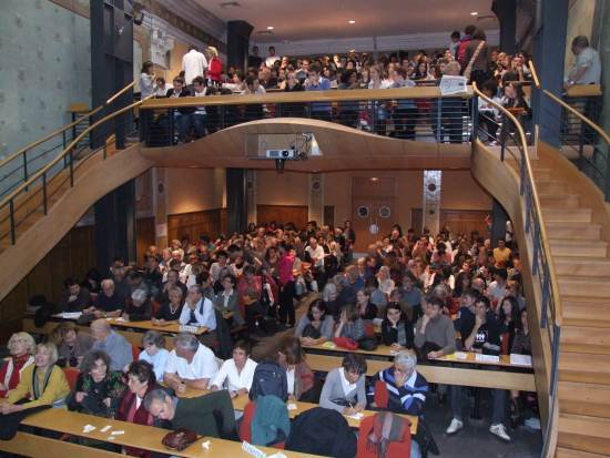 Dès que l’on donne la parole à la salle, la précision de la réponse d’Edwy Plénel montre immédiatement toute l’attention qu’il porte à la question. Là encore, il s’appuie sur des faits et le dialogue apparaît comme un élément fondamental. Toutes les questions sont reçues comme de vraies questions. Le public s’est intéressé, par exemple, au financement de Médiapart ou à Twitter, mais n’a pas pu, faute de temps, déployer tout son questionnement. Celui-ci n’aurait pas manqué de refléter la diversité de la composition de l’assemblée : étudiants de l’IEP, étudiants journalistes, membres d’associations comme Attac ou la Ligue des Droits de l’Homme, personnes venues individuellement de tous les alentours…