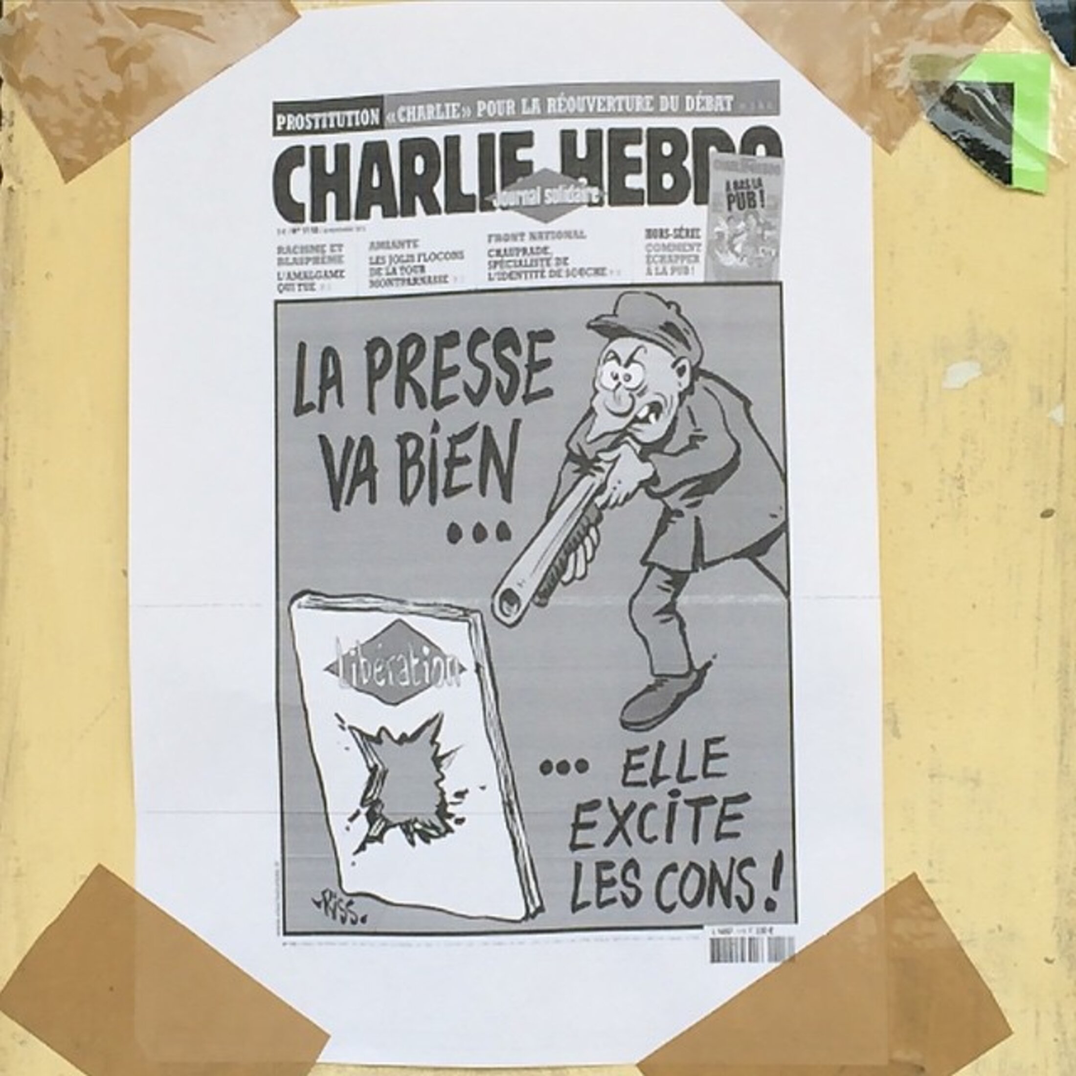 Il faut se rappeler que si l’histoire de la presse satirique en France est ancienne, elle est née dans sa dimension moderne, politique et frondeuse telle que nous la connaissons encore aujourd’hui, lors de la Révolution de 1789. C’est bien sur la mise en place d’un espace public libre, où la représentation journalistique permet la représentation politique, et donc l’expression du jeu démocratique dans sa toute sa portée, que sont nés les ancêtres de Charlie Hebdo. L’article 11 de la Déclaration des droits de l’homme et du citoyen libère la presse de toute censure : « La libre communication des pensées et des opinions est un des droits les plus précieux pour l’homme ; tout citoyen peut donc parler, écrire, imprimer librement ». Sur cette libération formidable des énergies médiatiques, des dizaines et des dizaines de journaux sont fondés à Paris dès l’automne de 1789, et parmi eux bien sûr des petits journaux contestataires, enflammés, engagés, dénonçant tantôt les forces conservatrices et contre-révolutionnaires, tantôt la légitimité des députés. Parmi ces titres les plus connus, sans doute Le Père Duchesne d’Hébert, au langage populaire et cru, ou encore L’Ami du peuple de Marat, journaliste et homme politique assassiné en 1793, et quantité de petites feuilles frondeuses et comiques de toutes obédiences. Pendant ses quarante premières années, la presse satirique utilise de manière très marginale le dessin, mais son impact n’en est pas moins profond sur la société française.