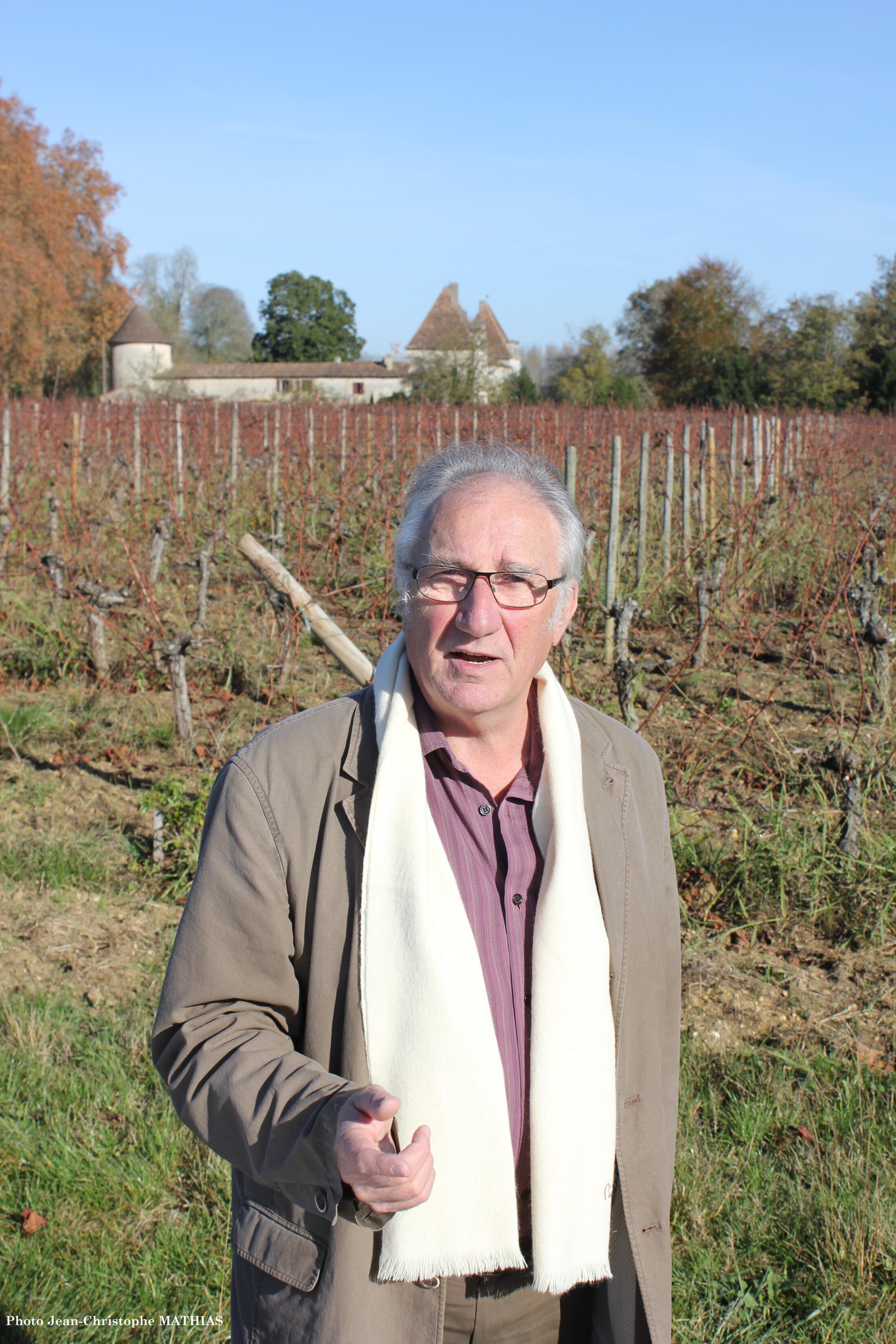 Jean-Robert Thomas est le président de l'association Landes Graves Viticulture Environnement en Arruan (LGVEA): ici près de la gare de Saint-Médard-d'Eyrans, point de départ prévu du dédoublement des voies au sud de Bordeaux (Gironde).
