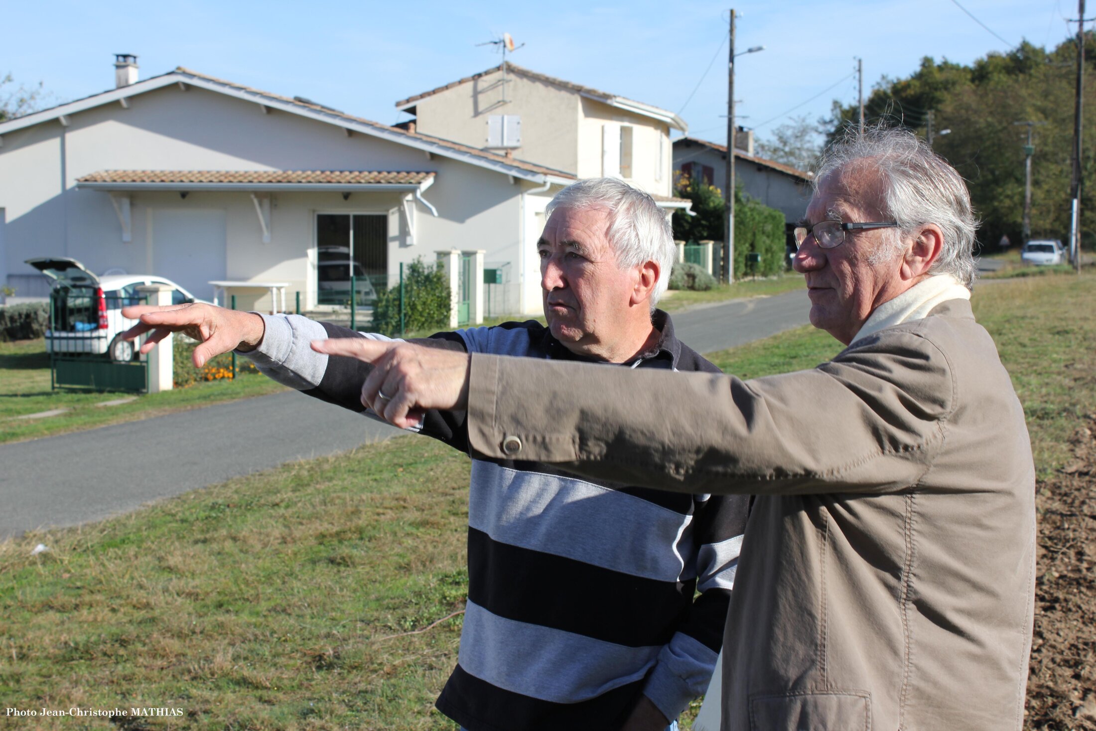 Jean-Pierre Bordeau, ici en compagnie de Jean-Robert Thomas, est un riverain des voies ferrées de la ligne Bordeaux-Toulouse à Ayguemorte-les-Graves. Sa maison est située à l'intersection des actuelles voies et des nouvelles voies prévues.