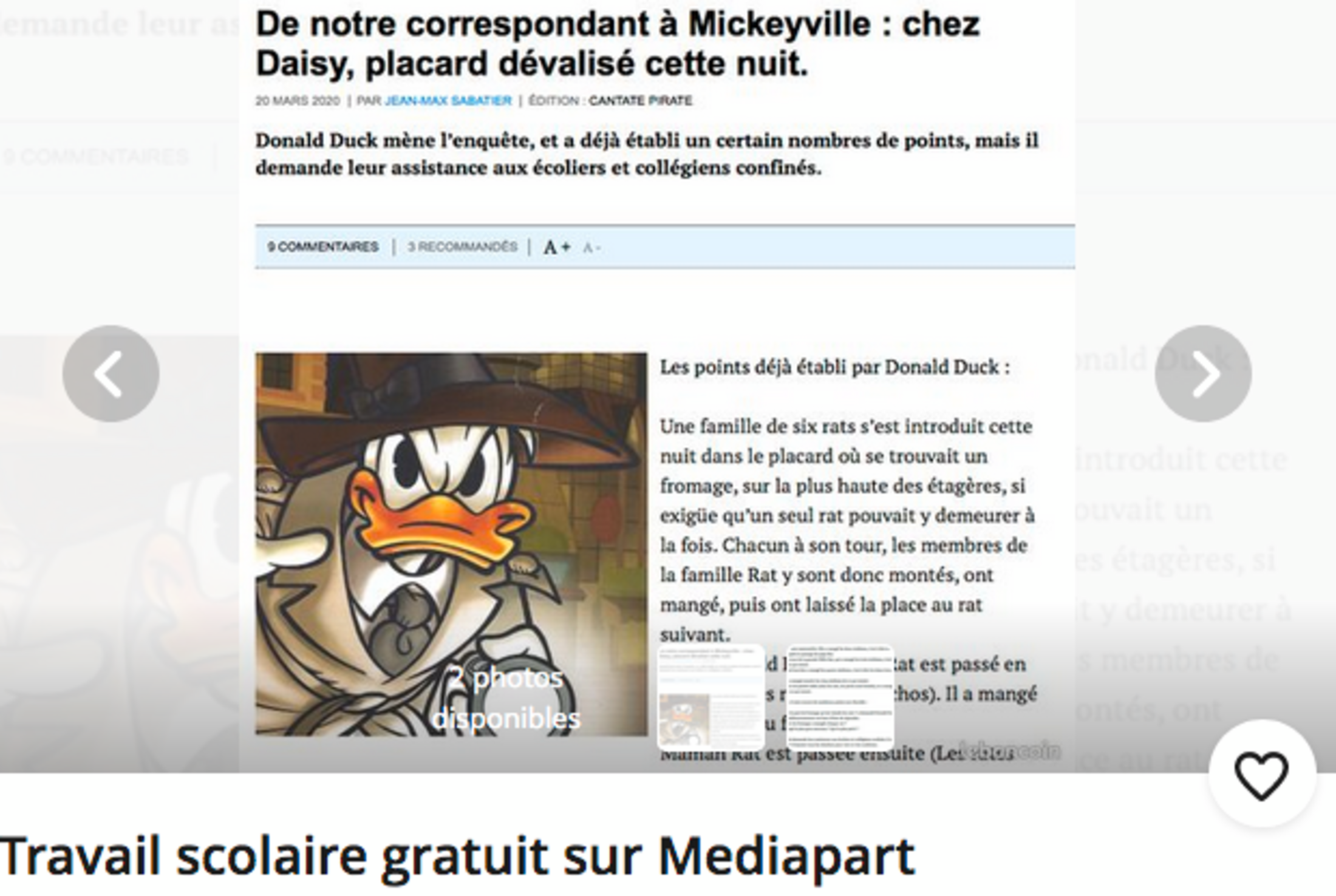 • Le bon geste sur Leboncoin ! Ça vient de sortir. J'ai aussitôt souscrit. Ça consiste à proposer des services pour une assistance aux personnes confinées. Donc j'ai mis une annonce pour parler de la Cantate Pirate. J'ai pas pu mettre le lien, mais j'ai indiqué une démarche simple pour trouver l'annonce (taper cantate pirate mediapart) et l'annonce a été acceptée. J'espère donc accueillir des élèves (j'ai pas mis nouveaux, parce que pour l'instant, j'ai pas un seul élève. Même Mustapha et Isabeille veulent rien foutre.