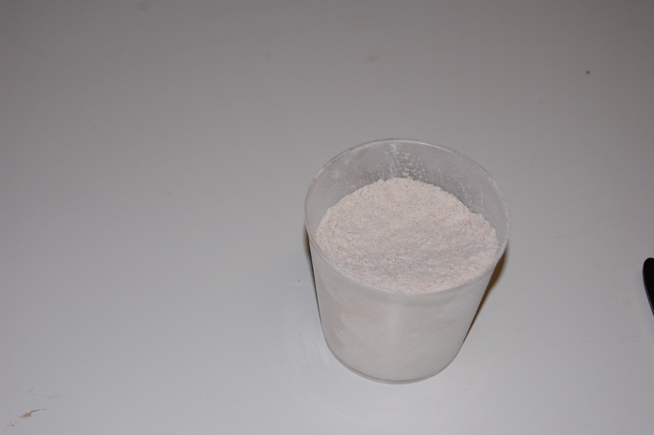 Dans un saladier, mettre une dose d’eau pleine à ras-bord (220 mL), une pincée de sel, une pincée de sucre. Voila ce que j’appelle une « pincée ».