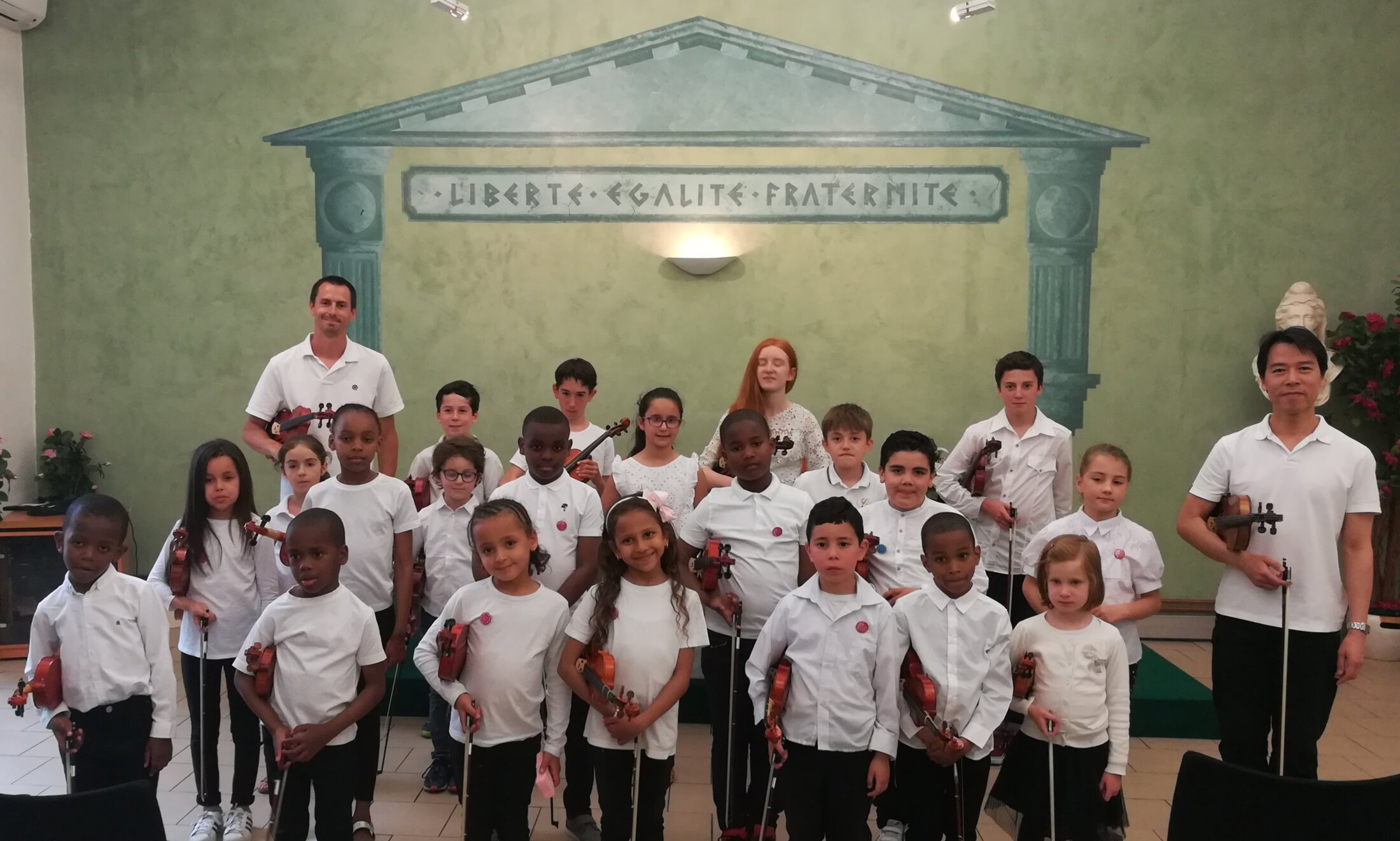Sous des photos d'enfants, victimes des bourreaux nazis, les petits violonistes de l'École internationale de Musique de Provence ont joué l'hymne européen et des rythmes entraînants. Sous les regards émus et admiratifs du public, et particulièrement de MM. Guillermo Martínez-Correcher García de Los Salmones, Consul Général du Royaume d'Espagne, Eric Jacquemin, Consul Général du Royaume de Belgique, ainsi que de hautes personnalités, d'élus municipaux et de dirigeants d'association, dont Mme Marie-Juliette Labarre, Présidente du Comité de Marseille/Bouches-du-Rhône de l'Association France Etats-Unis, Me Michel Pautot de l'association Legisport...