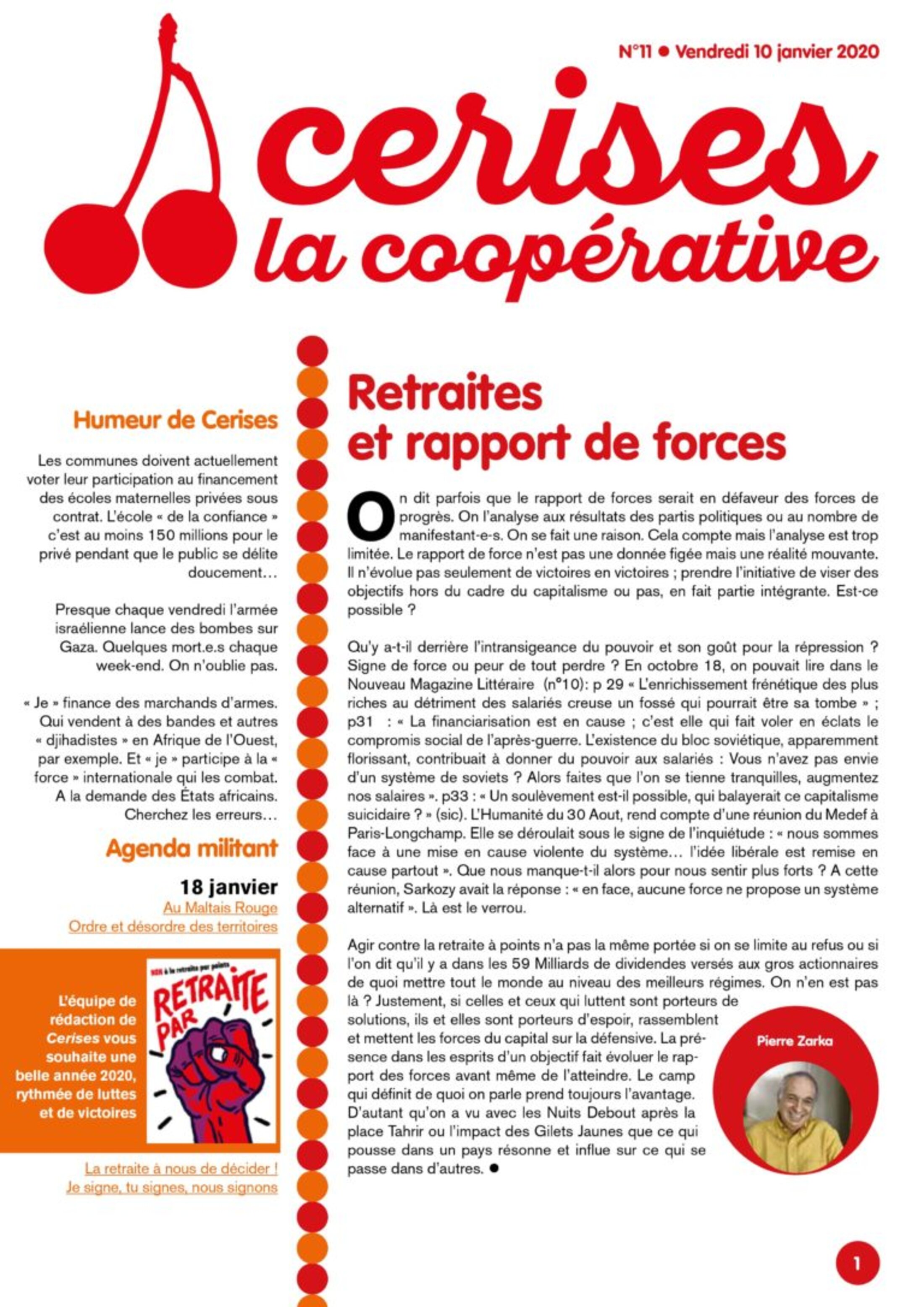 Evidemment les retraites sont toujours à l’ordre du jour pour Josiane (le modèle allemand, cette fois-ci, semble oublié par ses traditionnels admirateurs) et par Pierre Zarka qui consacre son édito à ce que peut être un rapport de forces si l’on veut bien jeter un œil au-delà du bout de son quotidien.