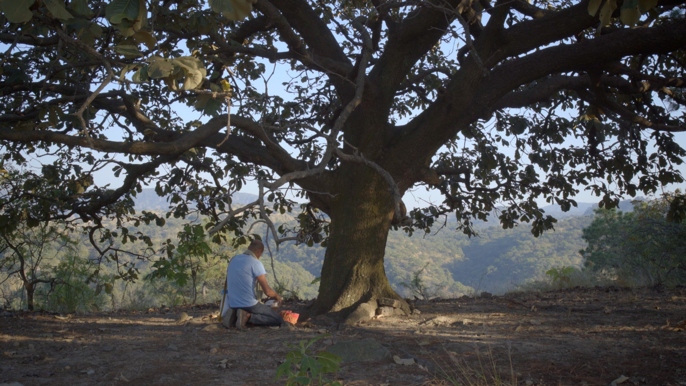 D'après le travail du scénario, nous avons pensé qu'il était important de décrire Víctor : le tabac, les chants, la nature et les prières. Cependant, il a fallu attendre le montage pour que nous puissions relier cela à la protestation du film et suggérer que l'offrande que Víctor fait à voix basse est (en citant le documentaire) « pour les générations qui viennent et pour celles qui ont passé. »