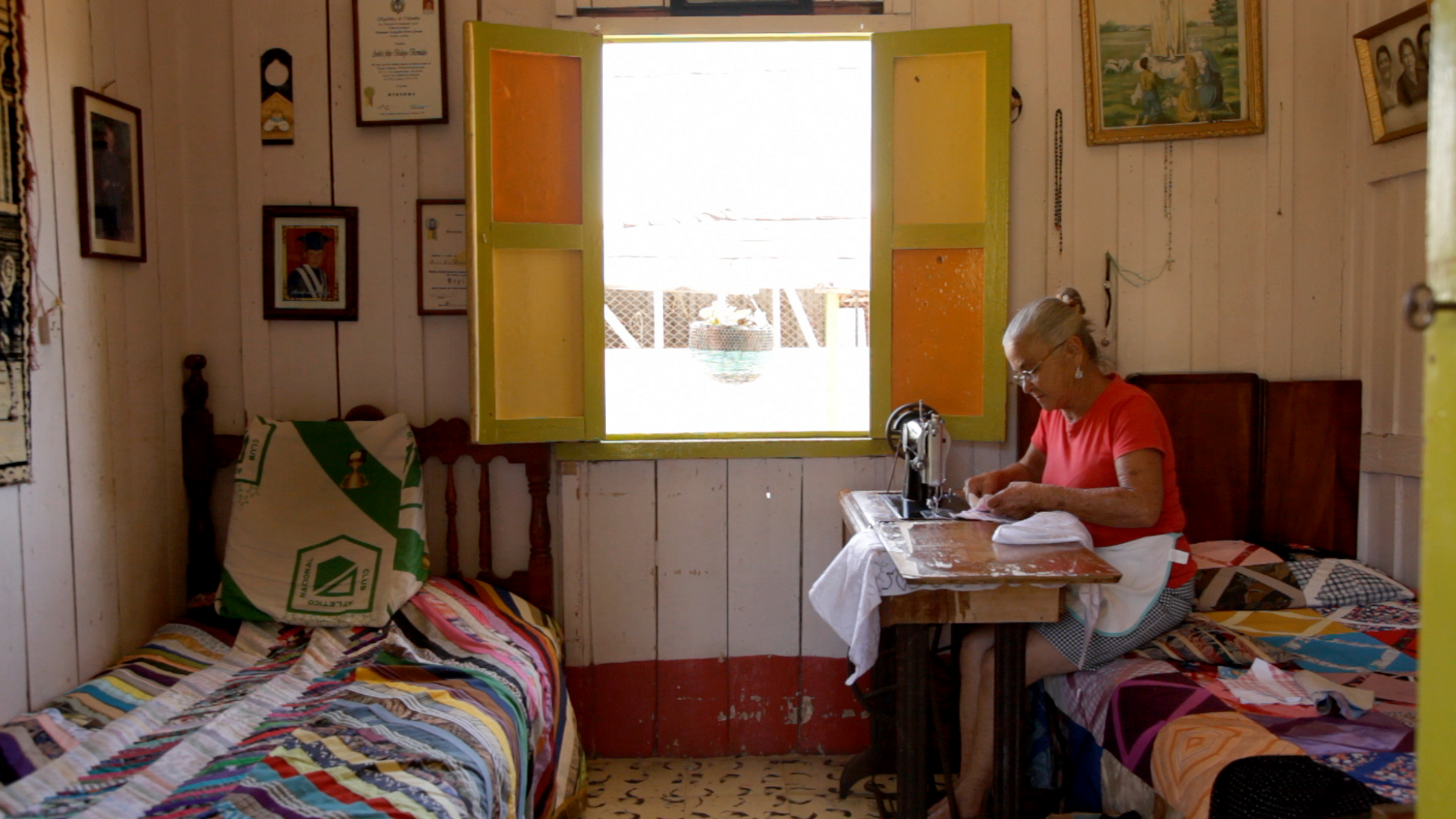 Catalina Mesa : Jericó est un village qui se trouve à une heure et demie d’un endroit où ma famille a des terres, dont elle a hérité. J’ai grandi avec une grand-tante - le film lui est dédié - qui nous a raconté toute notre vie son enfance à Jericó. Je ne suis allée que deux ou trois fois à Jericó. C’était plus un Jericó imaginaire, qu’elle nous racontait. Et ce n’était que des histoires d’enfance parce que c’était sa génération à elle, qui a migré du village à la ville de Medellin. Toute la famille a donc migré en ville, et il ne reste de ces histoires de famille que sa parole. Ma grand-tante est donc le lien entre la vie urbaine et le village, elle assume les racines de la famille. Même si on est toutes deux de générations différentes, nous étions très proches, parce qu’elle était un peu l’écrivain de sa génération, et que j’écris depuis toujours. Je suis arrivée aux images après l’écriture. On s’est donc souvent retrouvées, à parler des choses, de la vie en général. Et c’est quelqu’un qui avait vraiment une grâce et une parole délicieuse, quelqu’un qui avait vraiment ce goût de partager. On était tous autour d’elle et c’était vraiment magique. Même si elle n’est pas dans le film, parce qu’elle est morte avant, ce que j’ai retrouvé après avec ces femmes c’était la même chose : cette capacité de relier la vie, c’est-à-dire être capable de parler de la douleur avec beaucoup d’humour, ou de parler de choses difficiles mais avec beaucoup de force. C’était une sorte de réconciliatrice des opposés de la vie, tout le temps. De sa parole, on sortait toujours renouvelés, en paix, même s’il y avait des choses difficiles, il y avait toujours quelque chose de réconciliateur dans sa parole. Quand elle est tombée malade, j’étais déjà en France depuis très longtemps, très influencée par Depardon, ou par d’autres, comme par exemple Bachelard et La Poétique de l’espace. Magnifique cadeau que m’a donné la France, de valoriser plus la mémoire, l’histoire, parce que là-bas on est une culture plus jeune ! Quand elle est tombée malade je me suis dit qu’il fallait absolument que j’enregistre son histoire à elle pour garder cette mémoire dans ma famille. Donc je l’ai fait, je l’ai filmée, j’ai enregistré ses histoires. Et quand elle est morte j’ai senti comme si tout un chapitre de ma famille mais aussi tout un collectif culturel, allait disparaître : ces décorations, ces espaces, cet esprit du temps, cette musique, ce romantisme, cette poésie… Tout ça ! Ce n’est pas que ça disparaisse totalement mais ça change. Les nouvelles générations, c’est autre chose. J’ai voulu revenir à Jericó, d’abord pour rencontrer ce Jericó imaginaire dans le réel. Quelques fois, dans le film, quand on regarde par la fenêtre, on voit un peu des espaces intérieurs, comme s’ils étaient arrêtés dans le temps, certains espaces qui ne changent pas : c’est très étonnant ! Je me suis dit qu’il fallait absolument que je fasse un travail pour préserver, conserver et célébrer ça, ce temps un peu arrêté, dont je ne savais pas ce qu’il allait devenir après.