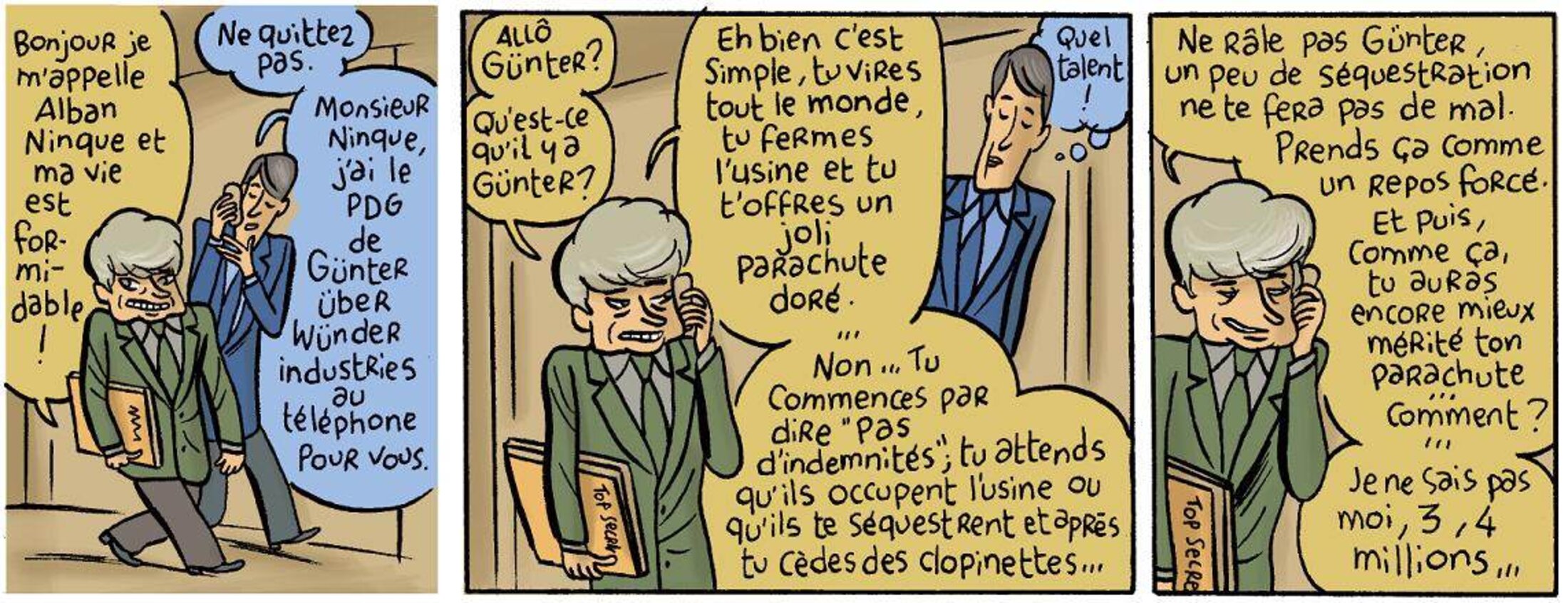 Mais ce n’est pas une étude sociologique, on n’est pas des sociologues, c’est une manière de se remettre les idées en place. C’est pour ça que j’aime bien les Guignols de l’info par exemple. Ce côté « stabylo », qui surligne, qui pointe, qui fait ressortir les passages importants dans un livre. Et puis j’ai envie que la BD parle de ça. J