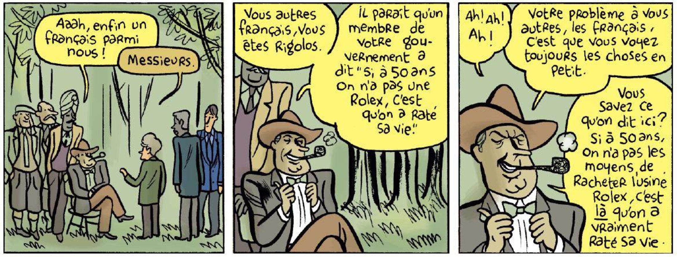 Oui, et dans le deuxième on a commencé à parler de la France d’en haut, parce que pour nous Boboland c‘est la frontière, ce mélange de bourgeois et de bohème, une catégorie à cheval entre deux mondes. C’était nouveau pour nous de décrire des gens qui sont un peu « au-dessus », ça nous faisait rire, ils ont des attitudes, des manières de faire, dans ce qu’on a pu lire récemment dans l’actualité, qui nous ont à la fois effrayés et fait rire, parce que c’est totalement absurde.