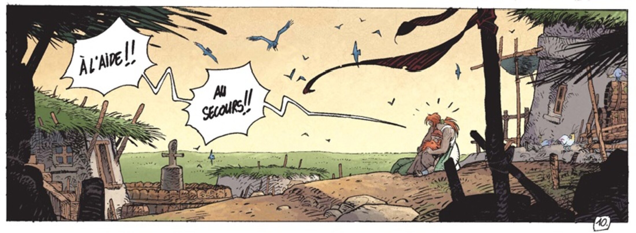 La Quête, c’est une envie, envie de raconter une histoire, l’histoire de personnages… D’ailleurs, tout ce que l’on fait, ensemble ou séparément, quel que soit le cadre, Régis dans Magasin Général, moi-même dans Tirésias, on est dans l’émotion, dans le non-dit même, tout cela s’inscrit dans la même veine. Après, dessiner un char, une 2CV ou un Lopvent, ce n’est qu’une question d’univers, au final ce sont les personnages qui priment.