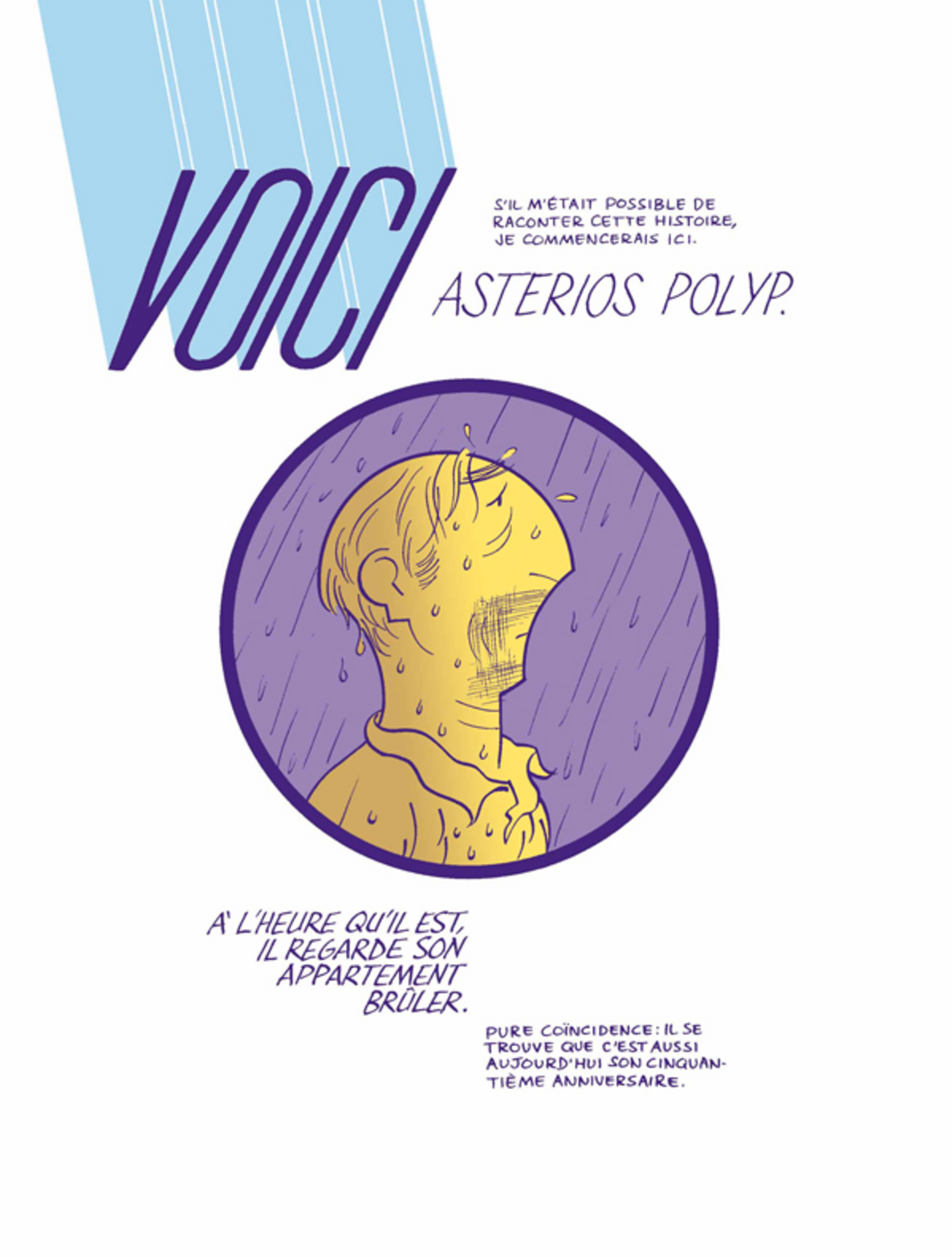 David Mazzucchelli nous projette dans un univers et une histoire à la fois singulière et chorale. Dans cet édifice (aux sens propres et figurés), Asterios Polyp est un architecte érudit, un «architecte de papier» qui n’a jamais rien construit, mais a dessiné, échafaudé, inspiré peut-être, théorisé, enseigné. Il s’est construit dans l’attraction. Il s’est créé son monde. Au centre duquel il rayonne. Et David Mazzucchelli, créateur, bâtisseur, ose la déconstruction. A cinquante ans exactement, Asterios va tout perdre en un éclair. Pour peut-être gagner de cette humanité qui semblait lui faire défaut, et quitter la sphère d’intellect pur dans laquelle il évoluait, distant et égotiste.