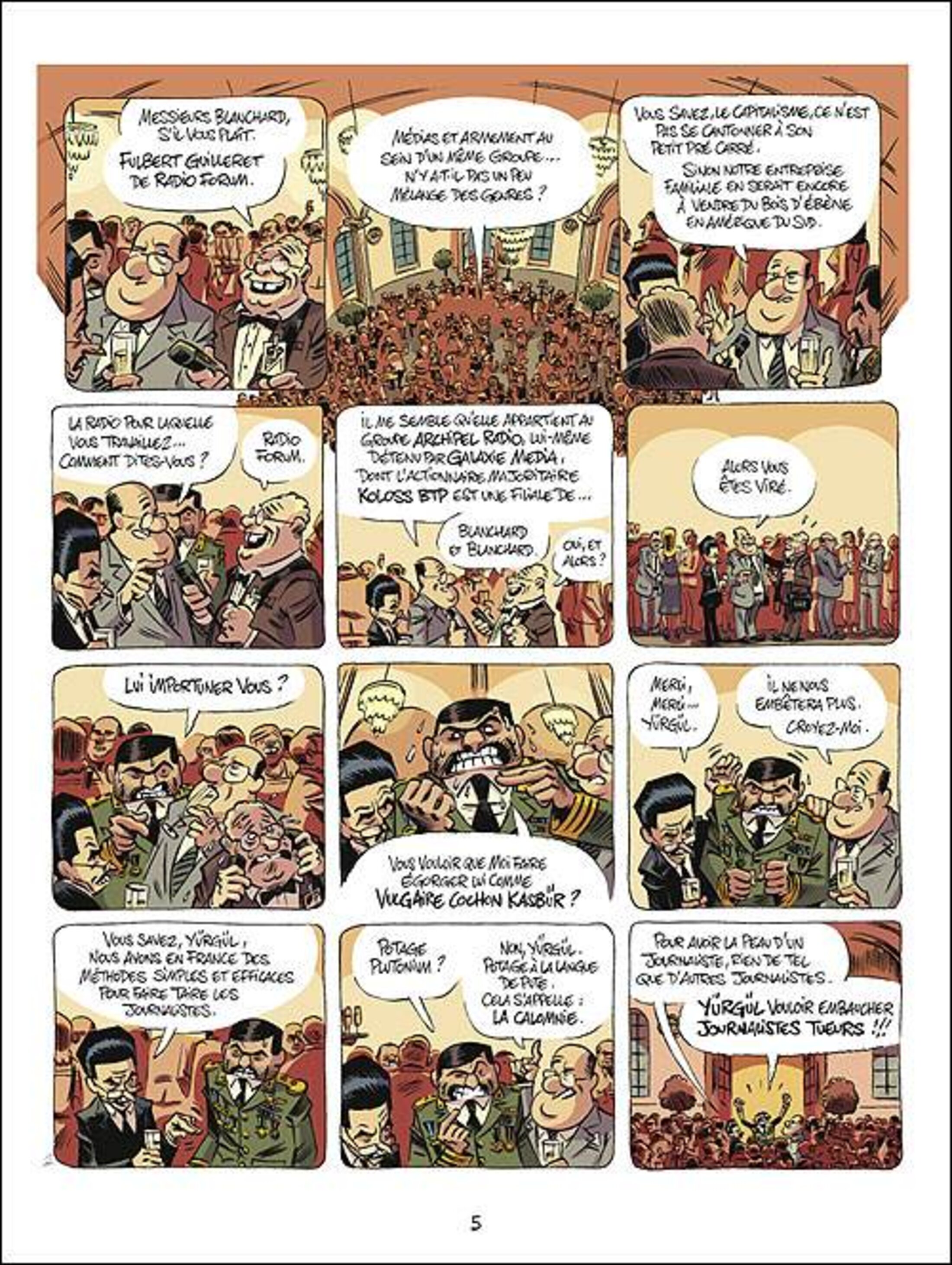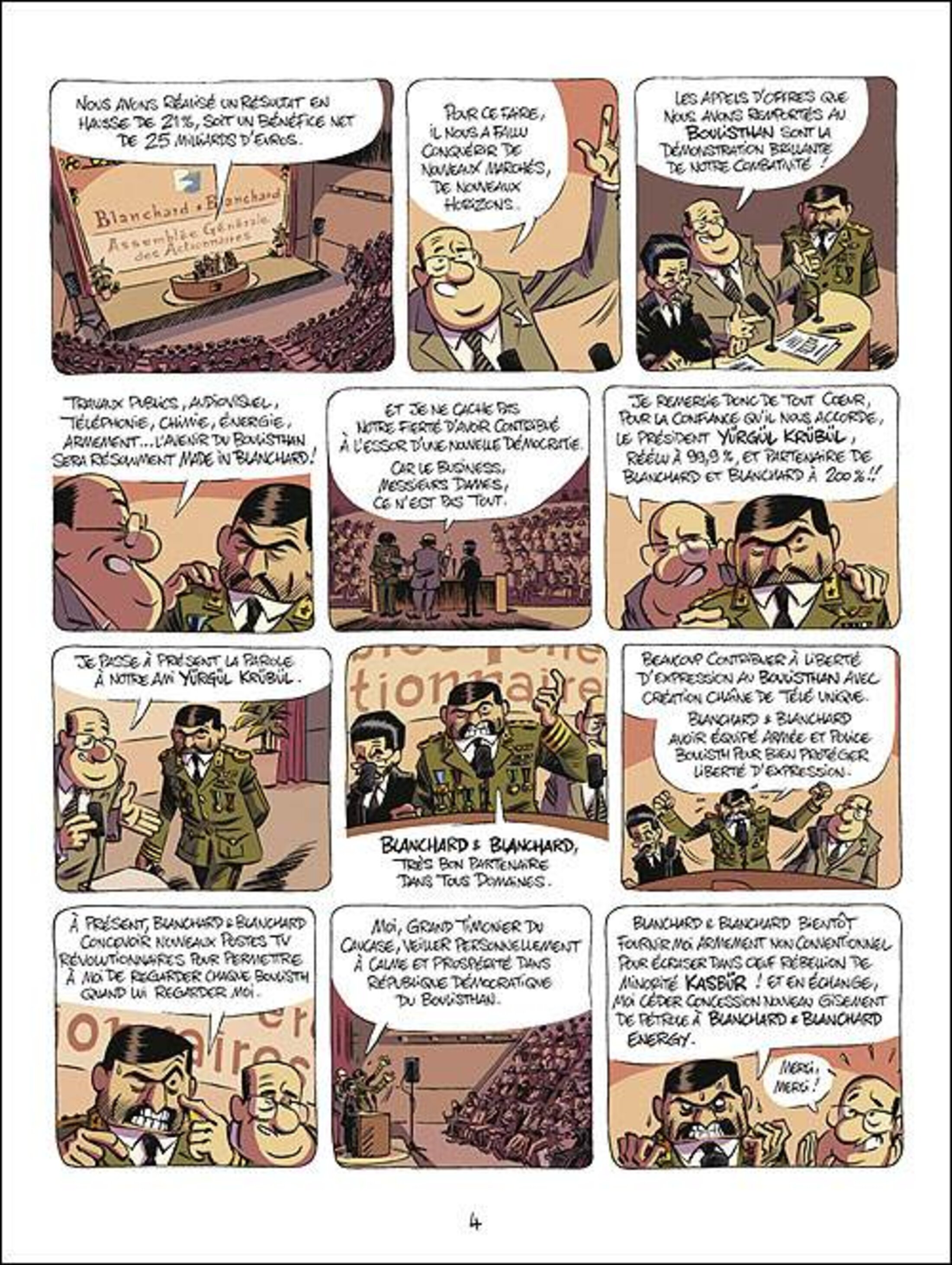 Ils sont deux frères, Arnaud et Serge, dirigeants omnipotents de Blanchard & Blanchard, entreprise florissante qui domine l'économie (médias, armement, travaux publics, énergie, téléphonie...). Ils s'invitent en politique comme on réserve une table au Fouquet's, fraient avec les dictateurs. Et encaissent leur dime au passage.