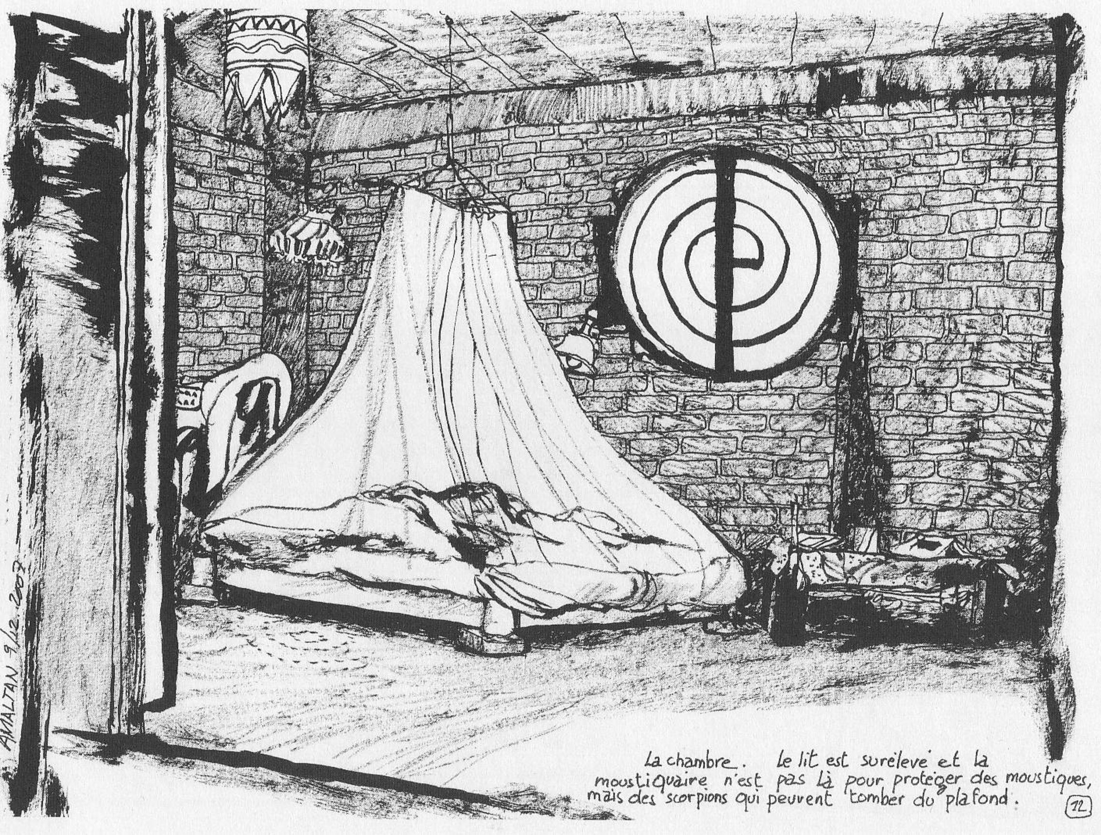 L’auteur dit à propos d’une des bandes dessinées dans laquelle il a révolutionné le rapport à l’autobiographie : « Je dessine mon personnage avec la tête ouverte pour qu’il soit ouvert sur le monde. Quand j’étais enfant, je dessinais toujours ainsi mes bonshommes. Un jour j’apprends que les enfants qui ont une tendance à la schizophrénie dessinent comme cela. Je ne sais pas trop ce que c’est que cette maladie, mais elle me fait peur. A partir de ce jour je mets des chapeaux bien enfoncés sur leur tête. Pour le premier voyage, j’enfreins l’interdit. J’ai plus de quarante ans et je me dis protégé de la folie. Quand le livre est en librairie , je reçois une lettre d’un grand docteur des hôpitaux, un psychiatre . Il m’écrit son bonheur à la lecture du premier voyage et rajoute : « de plus je m’en sers pour expliquer la schizophrénie à mes élèves. » J’ai un frisson dans le dos. »[1]