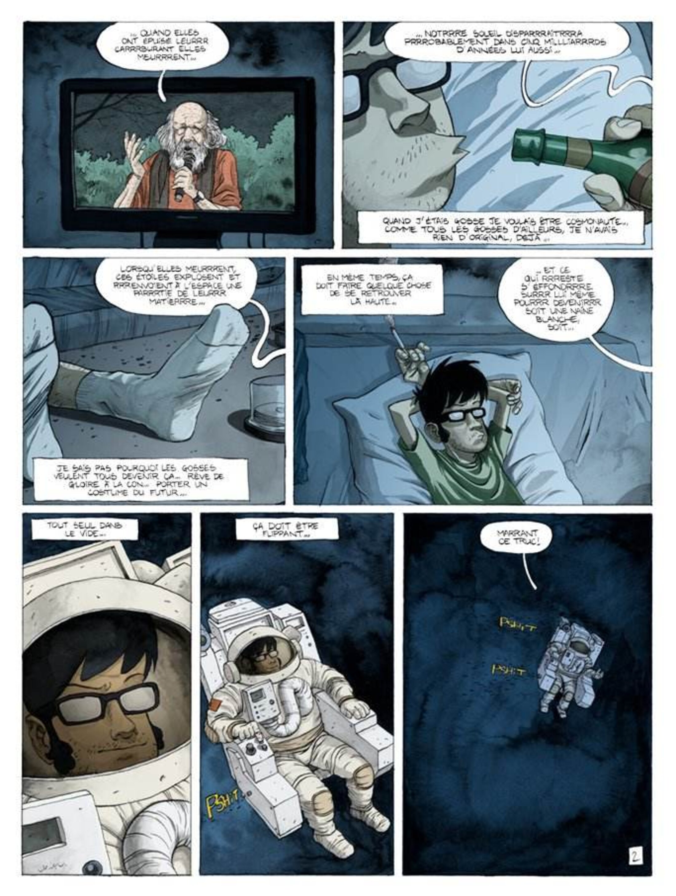Frédérik et Greg Salsedo au dessin et à la couleur, Olivier Jouvray au scénario ont réalisé ce récit d’une aventure où un père et son fils (re)découvrent le monde. Le monde du père, qui veut partir sur les traces de ses souvenirs, de sa vie passée. Celui du fils, fait d’expédients et d’une confiance toute relative en lui-même et en sa destinée. Un univers sans amour, pour l’un comme pour l’autre, le père ayant perdu son épouse il y a longtemps dans des circonstances tragiques, le fils vivant dans un quotidien vide de toute présence féminine.