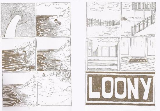 John Lennon n’a rien à voir dans cette histoire, les trois parties annoncées écrites et dessinées entre mars 2005 et août 2007, sont mises en perspective par une rapide illustration de ce que sont des lignes de fuite. Ainsi commence ce voyage, cette fuite, cette descente dans la destinée des Loony (timbré, cinglé en anglais), dans l’intimité de cette cellule réunie le temps d’une réunion de famille dans la maison au bord de l’océan.
