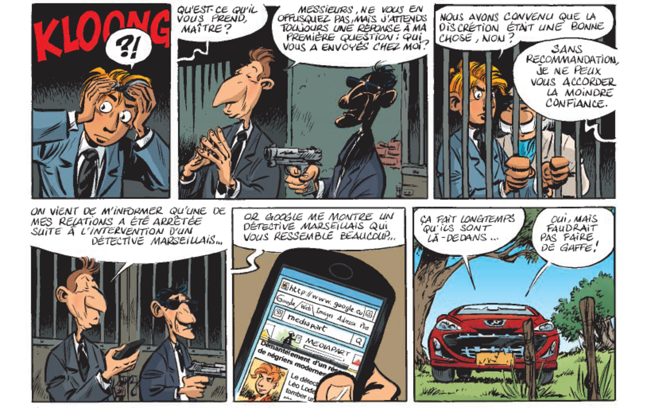 Passée la surprise de découvrir le support dans lequel j’écris sur la BD… dans une bande dessinée, deux idées me viennent alors à l’esprit : je me dis que la bande dessinée franco-belge, par le biais de Léo Loden, se met à l’heure d’internet en intégrant le smartphone à la panoplie des accessoires du détective moderne et des truands de papier. Et je me dis ensuite qu’une telle citation est une reconnaissance de plus pour le journal numérique…