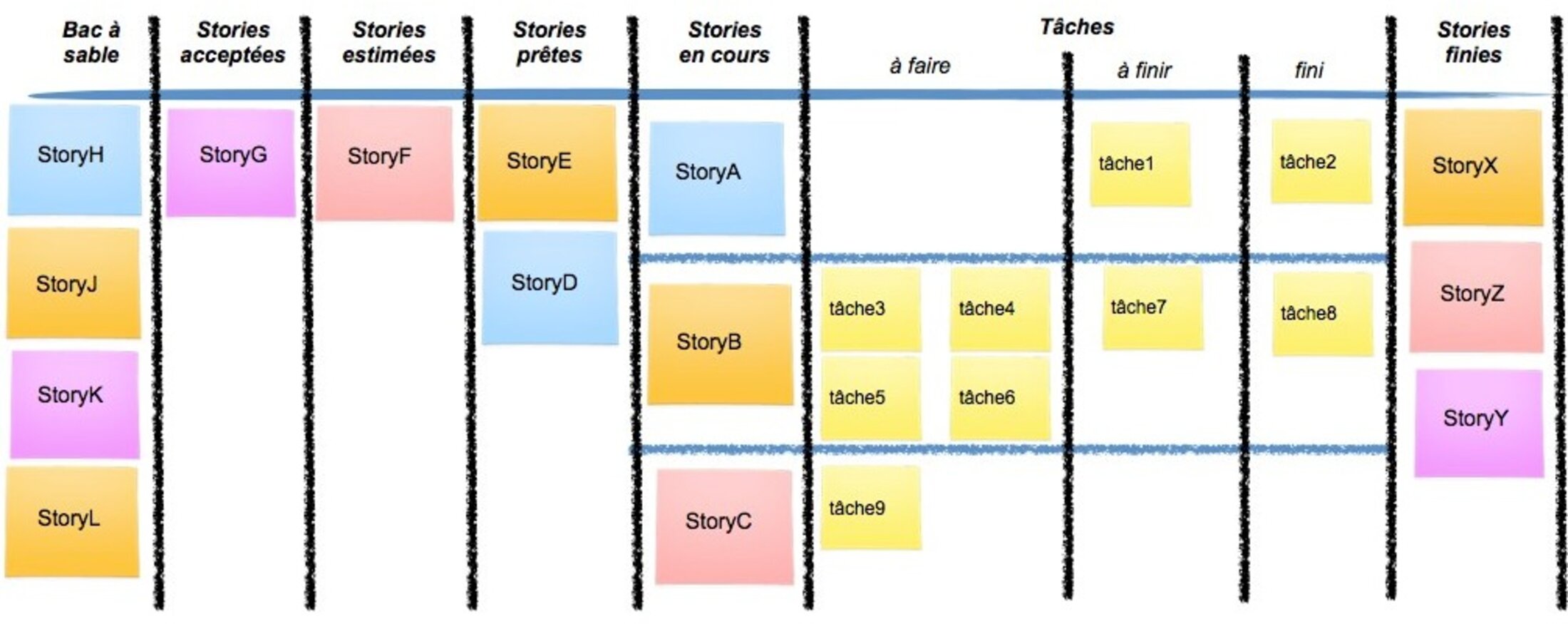 Récursivement, chaque engagement électoral est vu lui-même comme un Sprint-Goal, composé de différents ilots de tâches à réaliser, chaque ilot découpé en différentes tâches à effectuer (à faire/en cours/réalisé).