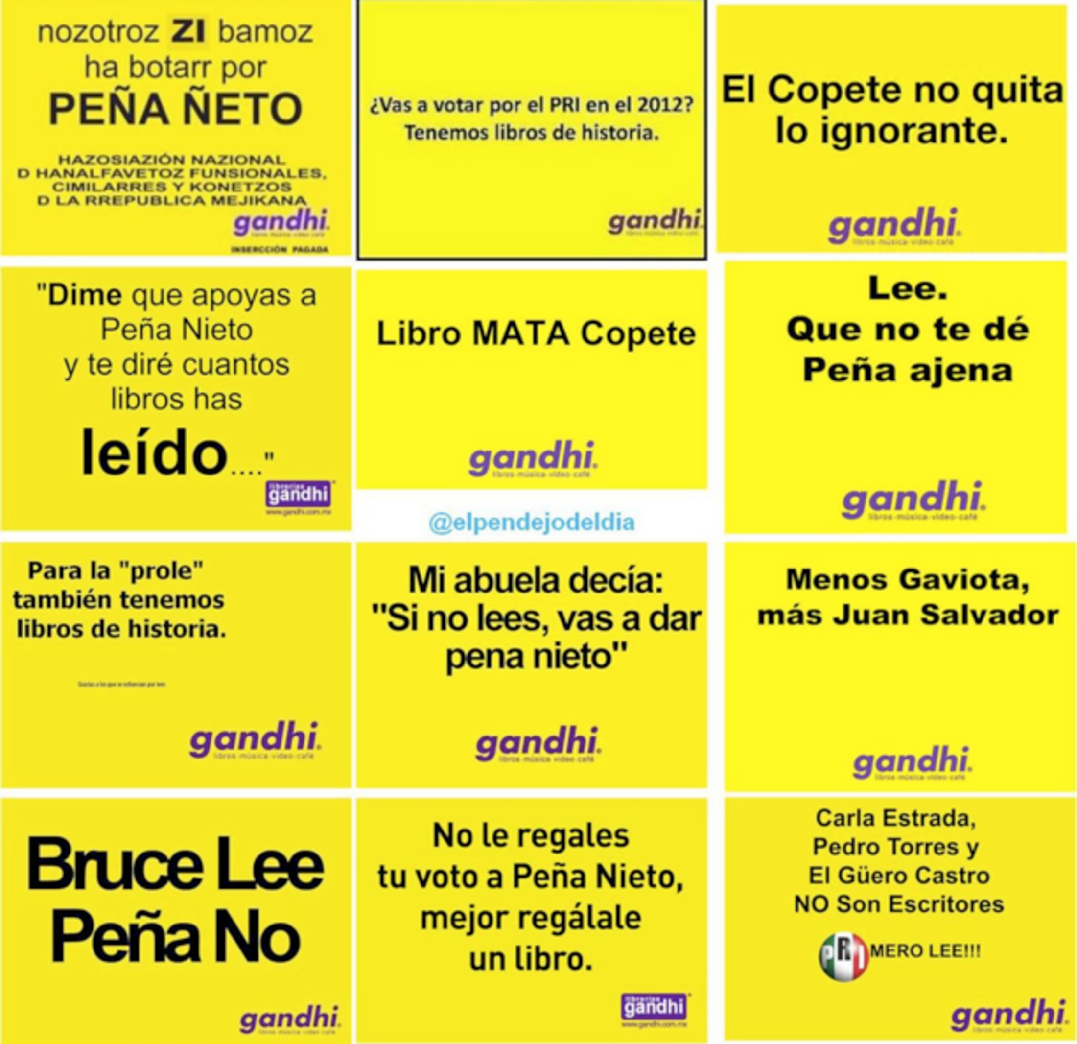 Tout cela aurait pu fonctionner comme sur du papier à musique mais « en México, todo puede pasar ». A l’instar du mouvement de contestation iranien en 2010, puis des révolutions arabes, encore une fois les réseaux sociaux, quoiqu’on en dise, jouent un rôle de trouble-fêtes dans l’orchestration de la campagne telle que souhaitent la mener les partis omniprésents (PRI et PAN). Depuis plusieurs mois, sans relâche, il ne se passe pas un jour sans que le candidat du PRI, Enrique Peña Nieto ne soit attaqué pour ses exactions commises en tant que gouverneur de l’état du Mexique (répression d’Atenco[iv], actions homophobes, répressions étudiantes), sur ses liens de proximité avec Carlos Salinas, ancien président mexicain en fuite, sur les mensonges et la corruption endémiques qui ont gangréné son parti durant les dernières années, et pour ne rien gâcher, sur son manque de culture (les réseaux sociaux se sont déchainés lors d’une interview de Peña Nieto à la féria internationale du livre de Guadalajara, où, venant présenter son propre livre, il se trouva incapable de citer trois livres ou trois auteurs qui l’auraient marqué) et, n’ayons pas peur des mots, sa limitation intellectuelle.