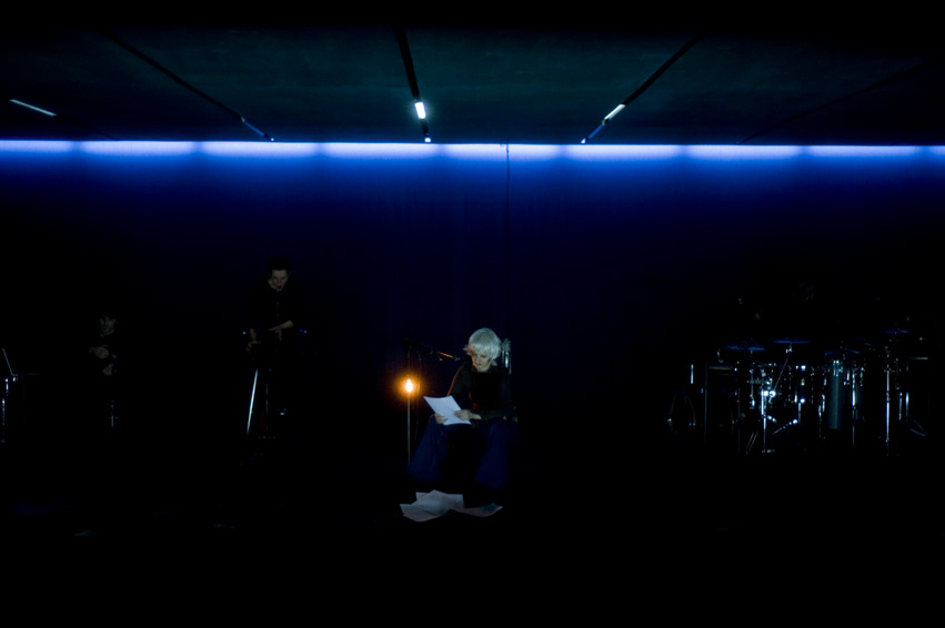 Fable allégorique de notre enlisement progressif dans l'obscurantisme, le Royaume d'en bas interroge notre besoin de connaissance - et son équivalent en négatif, le rejet de tout bagage - ainsi que cette vaste zone grise entre les deux, dans laquelle semble stagner une partie de nos contemporains. Si cette remise en question du rapport que nous entretenons, en tant qu'entité sociétale, au savoir et à la connaissance, ne se fait pas sans un brin de démonstration, un peu trop d'insistance dans le message, l'esthétisme du spectacle suffit toutefois à nous le faire oublier - et nous fait accéder à un autre degré de temporalité. Réunissant anamnèse et déréliction, le Royaume d'en bas est en effet un projet scénique audacieux. Placés dans la « caverne » sous l'écran, la comédienne et les trois musiciens sont à la fois acteurs et témoins. Coquilles désincarnées, ils offrent par leur attitude un contrepoint aussi bien au travail symbolique du vidéaste qu'à la trame musicale âpre et énergique de Jodlowski. Sans parler de la très habile mise en lumière, signée, elle aussi, Christophe Bergon, qui tisse sans y paraître un réseau de relation et de renvois entre les textes, les musiques, la vidéo - et le public, happé, voire interpellé par le discours.