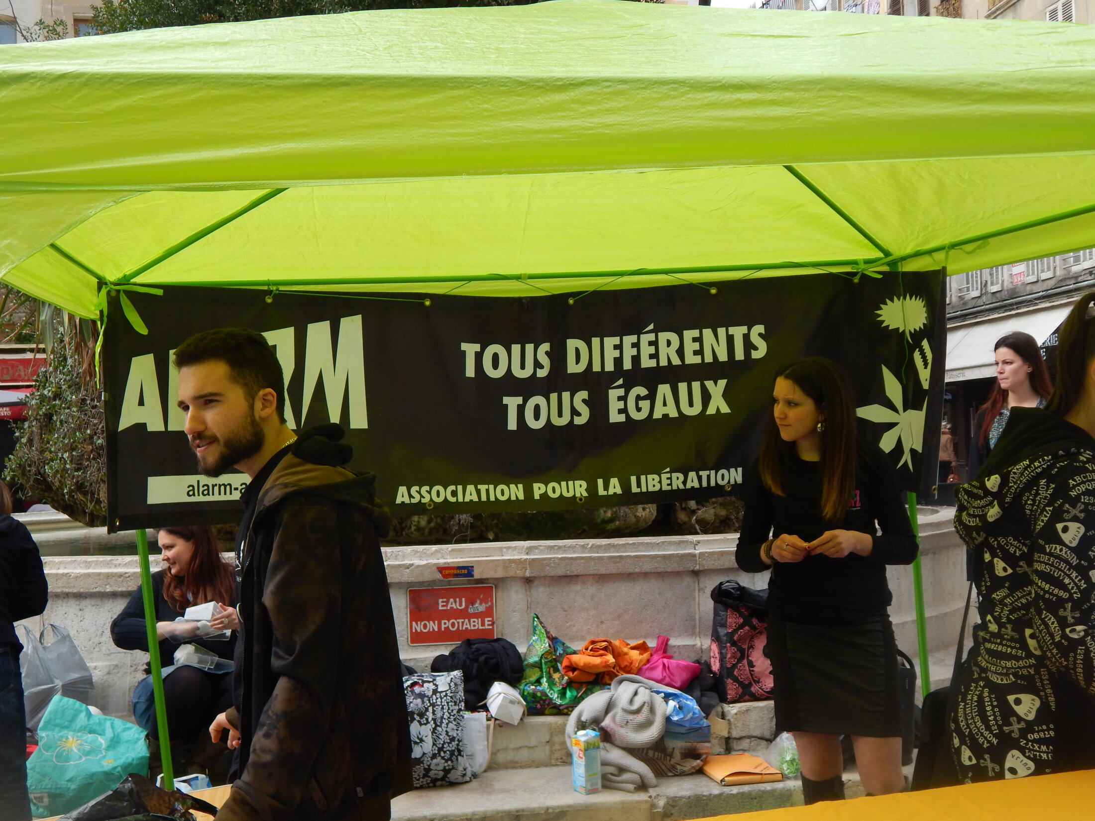 Hier, à Toulon, à l'initiative d'ALARM (Association pour la libération animale de la région marseillaise) s'est déroulée une dégustation de produits fait maison, tous végétaliens, sur un stand d'information, place Puget, tout près de la fontaine, à l'occasion de la Journée Internationale Sans Viande.