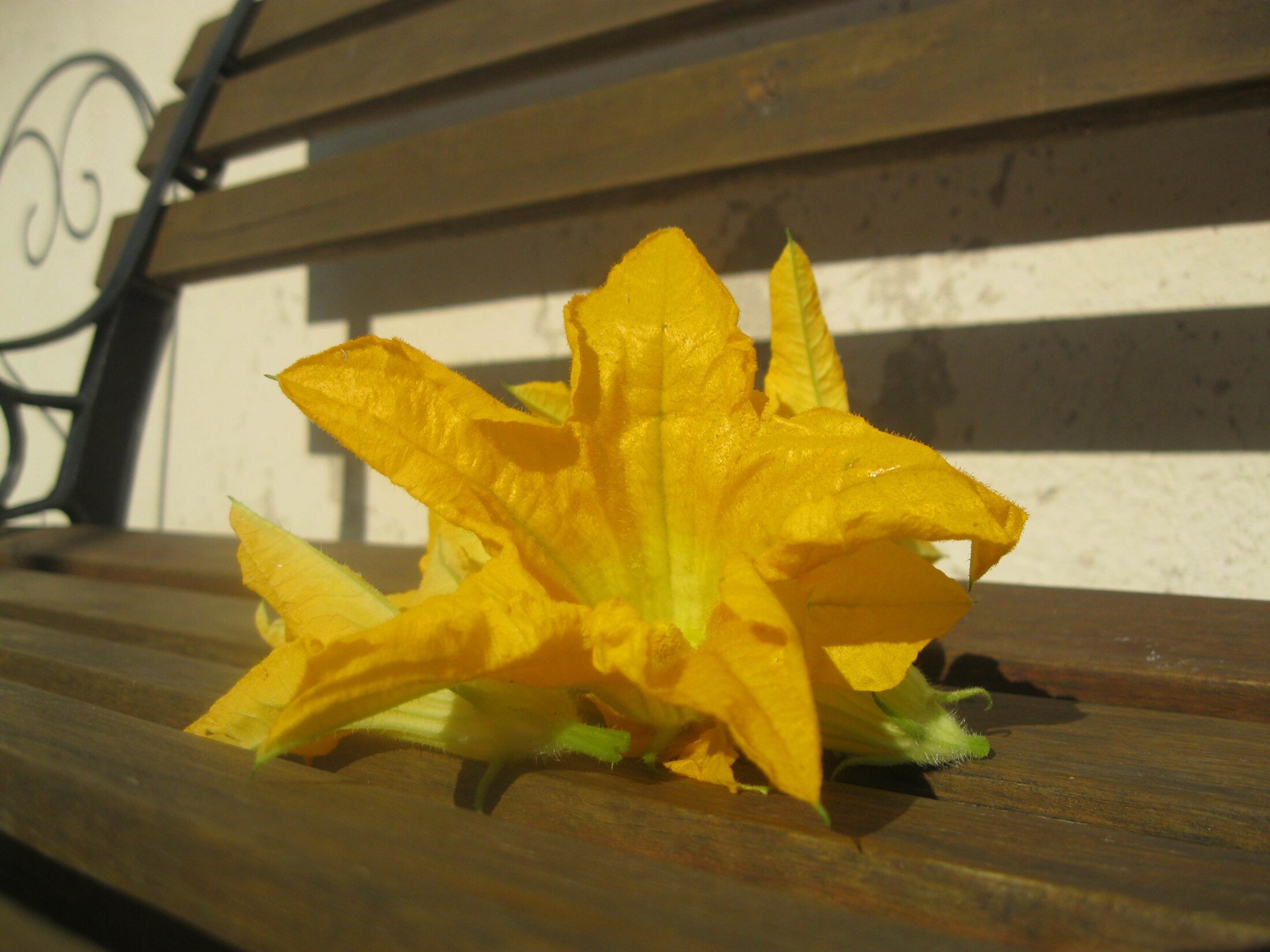 Vite fait, bien fait, avec la cueillette de ce matin. Pas de courgettes - elles coulent, comme on dit en Provence - mais des fleurs, de celles qu'il faut cueillir, c'est à dire celles qui n'ont pas la courgette au bout, mais une tige.(voir ici, l'explication) Mais ça c'était avant mon végétaLisme :-)