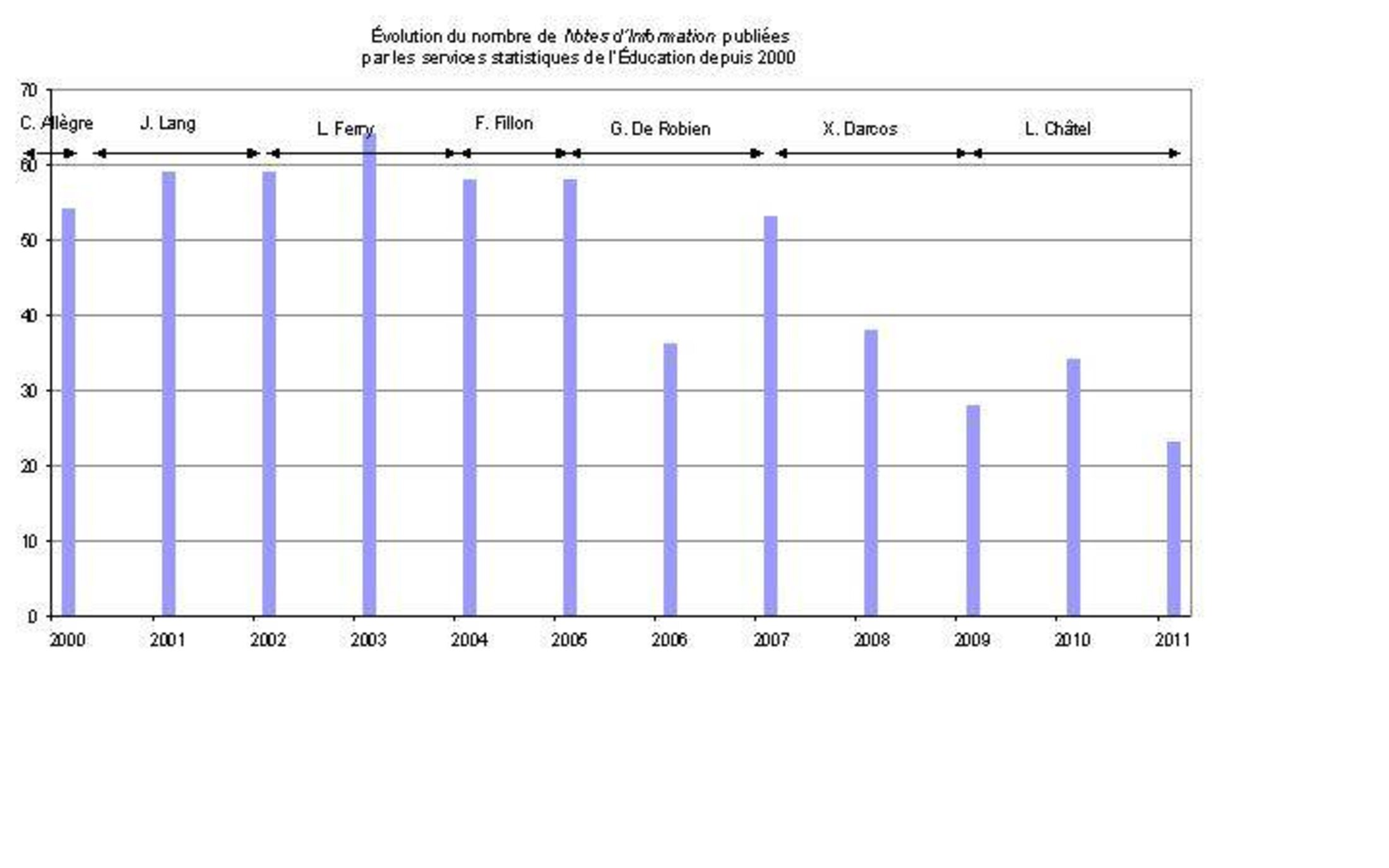 Cette rétention d'information a pour objectif de faciliter la communication du ministre. Ainsi, ce dernier a pu s'enorgueillir, lors de sa conférence de presse de rentrée (1er septembre 2011) d'améliorer les compétences des élèves malgré la hausse du nombre d'élèves et la baisse du nombre d'enseignants. Ces résultats sont pourtant sujets à caution : alors que jusqu'au milieu des années 2000, les enquêtes dont sont tirés ces résultats étaient conçues et réalisées conjointement par des statisticiens et des enseignants. Elles sont à présent menées par la Direction pédagogique du ministère (DGESCO). Or la DGESCO n'est pas un service statistique, et ne bénéficie donc pas de l'indépendance vis-à-vis du ministère dont jouissent légalement les services statistiques ministériels. De plus, la réalisation et l'exploitation d'enquêtes de ce type ne fait pas partie a priori des missions de la DGESCO. La publication des résultats moins flatteurs d'opérations conduites en parallèle par la Depp n'est pas autorisée, ce qui est plus inquiétant encore. Il paraît donc hasardeux de proclamer avec autant de certitude que le ministre que le niveau des élèves s'est amélioré. Le Haut conseil de l'éducation (HCE) ne vient-il pas lui aussi de mettre en doute récemment certaines évaluations menées par la DGESCO ainsi que les indicateurs qui en découlent ?