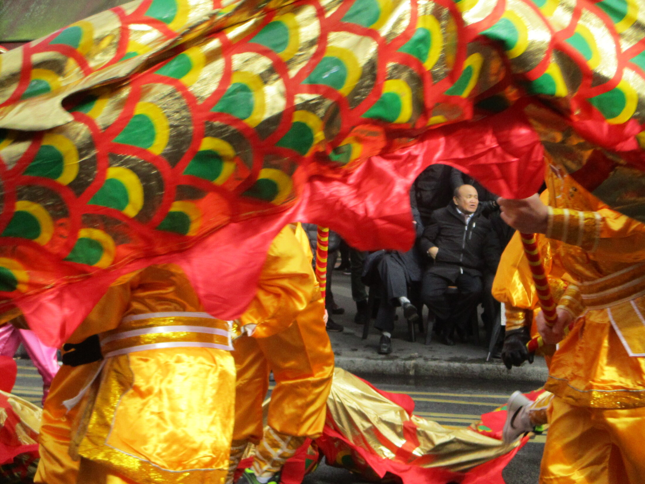 Paris, Chinatown -- C'est l'année du Coq de feu qui symbolise énergie et ambition. Badauds, photographes, touristes, vendeurs de ballons et de souvenirs, résidents du treizième arrondissement se pressent pour voir le défilé haut en couleurs. Les enfants sont ravis. Un petit garçon préfère attendre les dragons les pieds dans le caniveau. Il refuse de monter sur le trottoir. Une petite fille pleure son cheval en hélium qui s'est envolé par-dessus les toits. Elle revient sur ses pas, en vain. Les CRS ouvrent la voie. Les groupes costumés défilent, chantent, dansent, jouent. On salue cérémonieusement les dignitaires dont Zheng Hui, le fondateur de l'enseigne Paris Store. On le sollicite pour une photo. Un photographe venu d'ailleurs se renseigne : "Qui est-ce?" Les vigils veillent. Une dame élégante, sous une immense coiffe, sourit d'un sourire rêveur comme au cinéma et lance "Bonne année!"
