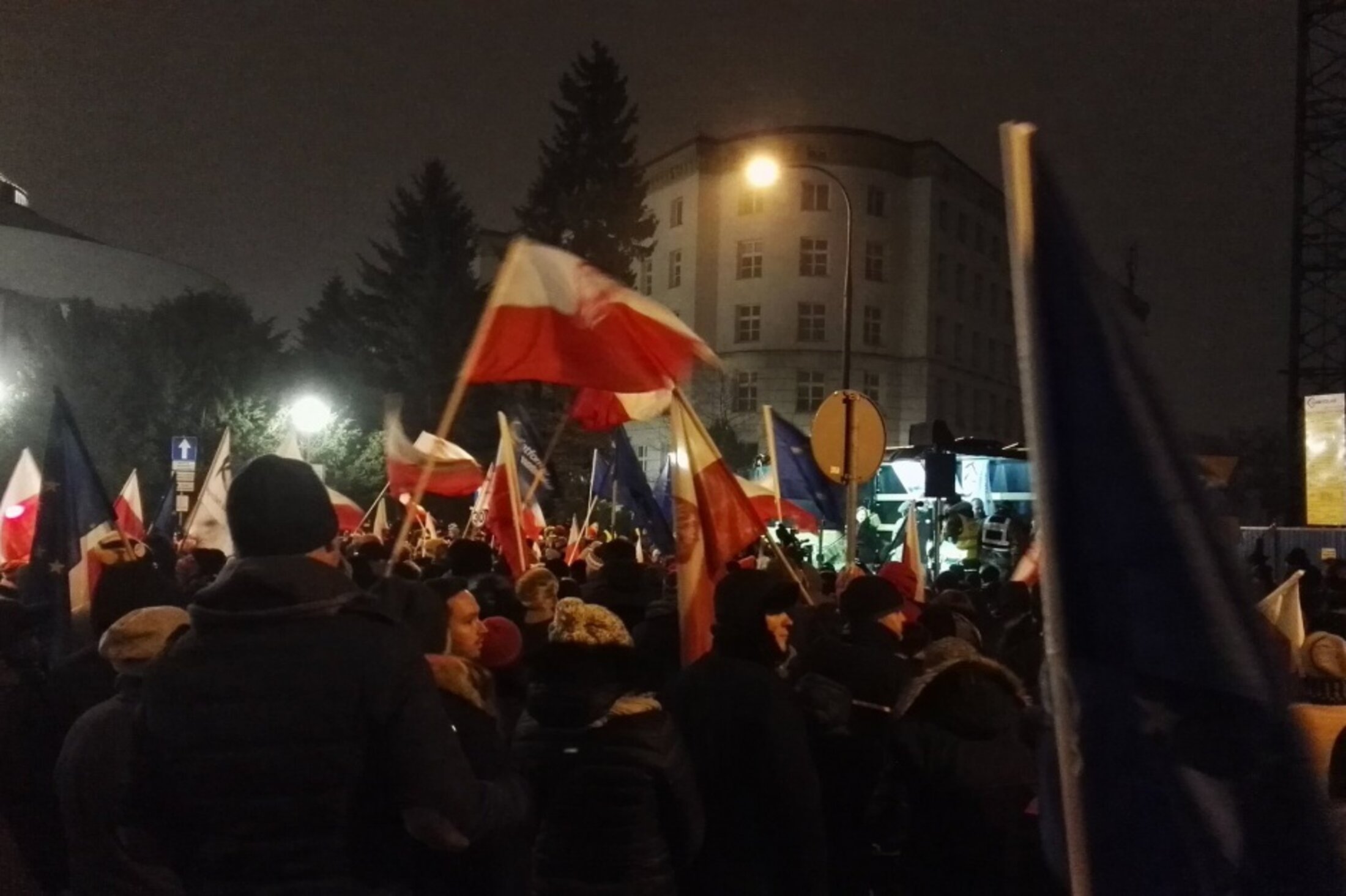 Selon le ministre de l’intérieur Mariusz Blaszczak, ceci était « nécessaire » du fait du blocus de la tribune de l’assemblée par l’opposition, la sortie du cadre institutionnel se justifiant par une ambiance putschiste. Durant toute la nuit, plusieurs milliers de manifestants hostiles au gouvernement se sont rassemblés spontanément et sans discontinuer afin de verrouiller les sorties du parlement, ce qui a entraîné l’intervention des forces de police pour dissiper la foule et permettre « l’exfiltration » des députés. « Nous ne nous laisserons pas terroriser », a déclaré Jarosław Kaczyński, le dirigeant du parti au pouvoir.