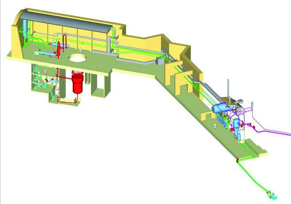 Ce réacteur à eau bouillante (REB) n’est pas visible de l’extérieur. Il est situé à 100 mètres à l’intérieur d’une colline sous une couverture rocheuse de 30 à 50 mètres. Le hall du réacteur a 10 mètres de large, 30 mètres de long et 26 mètres de haut. La salle du réacteur contient également des fosses à combustible pour le stockage temporaire du combustible utilisé. L’ensemble souterrain a un volume de 4500 m3. Les circuits de refroidissement sont situés à l'intérieur de la salle du réacteur et dans le tunnel d'entrée du réacteur. La salle de contrôle et les installations de service sont placées à l'extérieur de l'excavation. Les bâtiments de service contiennent des bureaux, des ateliers et des laboratoires.