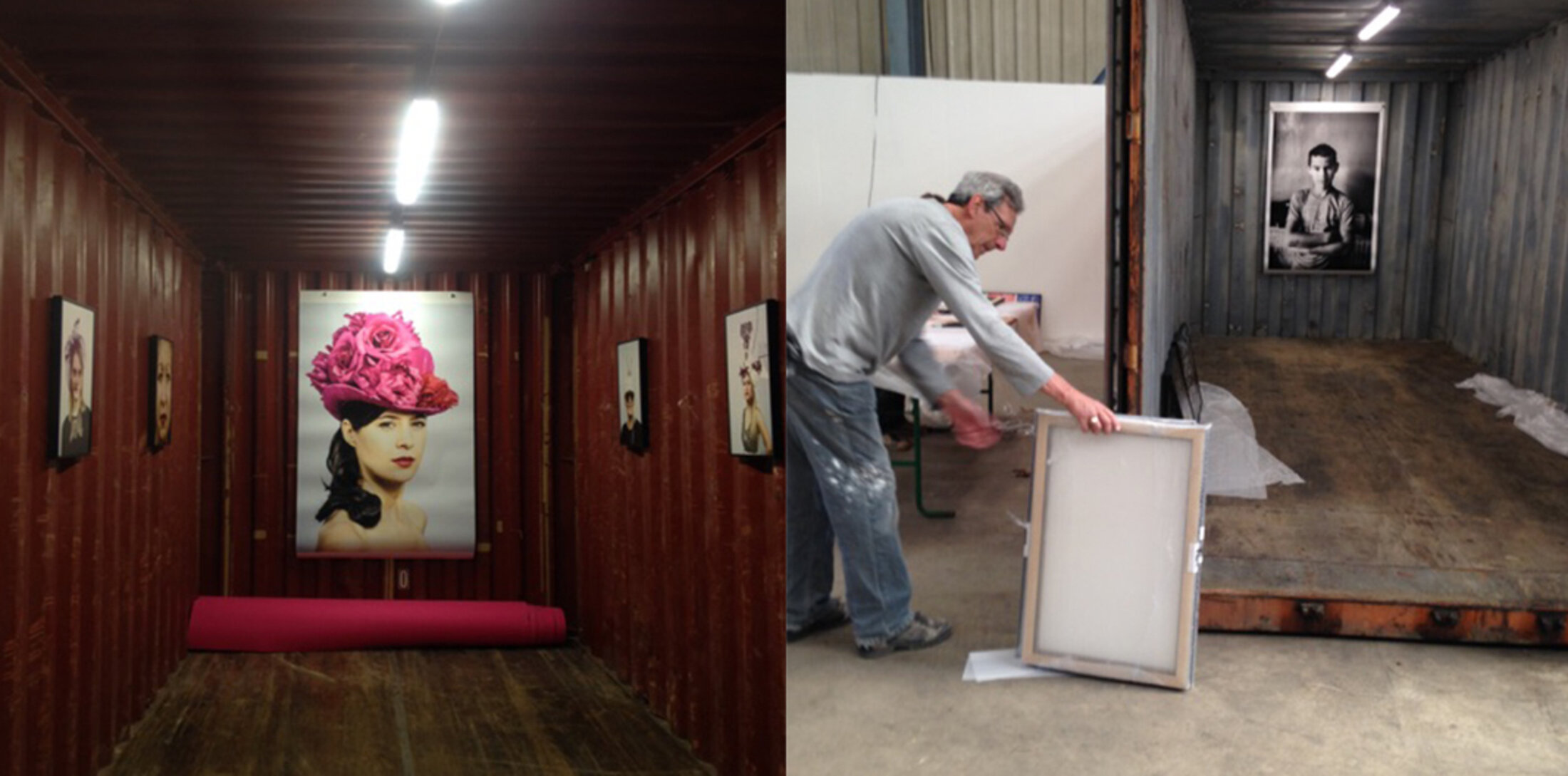 Pour structurer l’espace, 18 contenaires sont arrivés dans l’entrepôt afin d’être habillés par l’équipe du festival et ses dizaines de bénévoles, comme autant de salles dédiées aux photographes ayant participer à La France VUE D'ICI. Des mètres de moquette attendent d’être posés, les éclairages vont être disposés…. Le résultat est impressionnant, et préserve la singularité de chaque photographe, son point de vue, son approche, pour tisser un portrait passionnant du pays.
