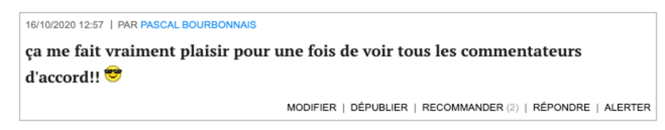 Dans ce brouhaha, nous avons sélectionné ce commentaire qui pourra nous mettre d’accord sur une chose : le choc partagé.