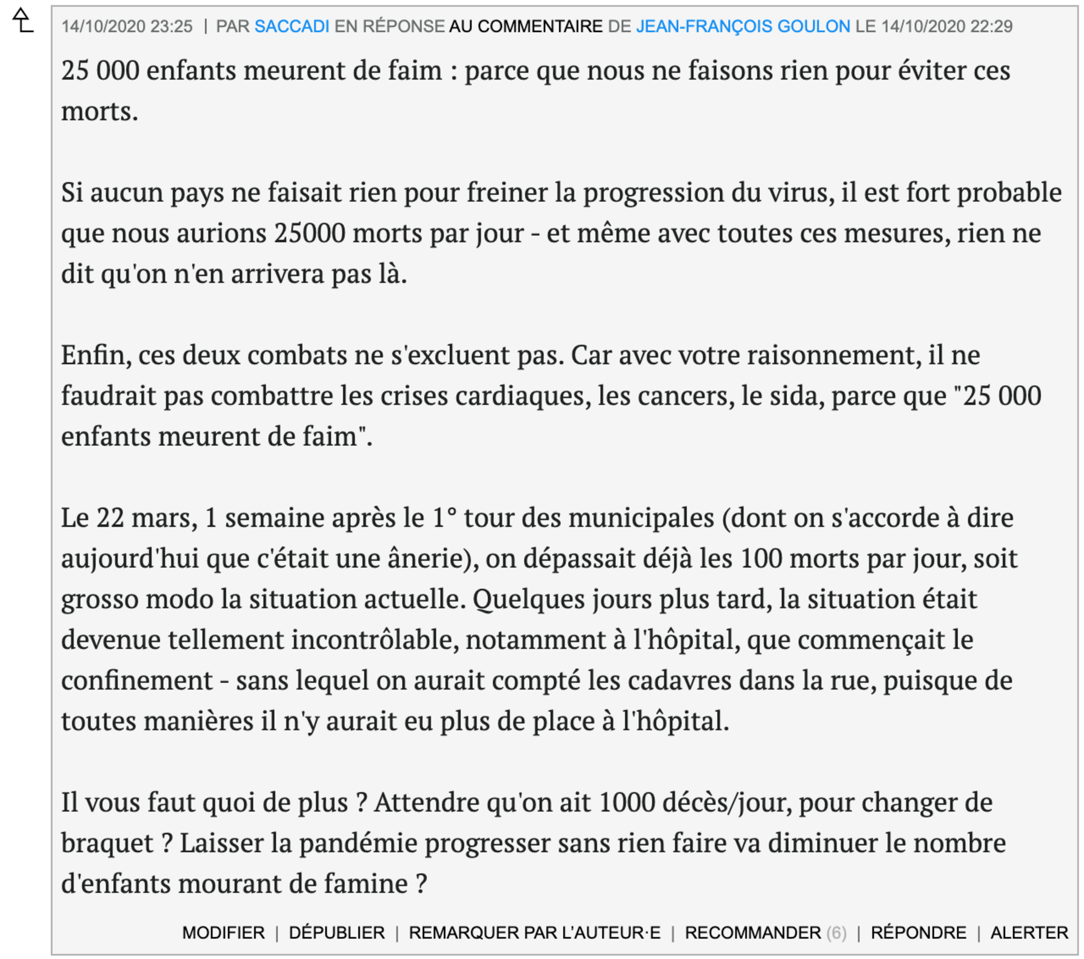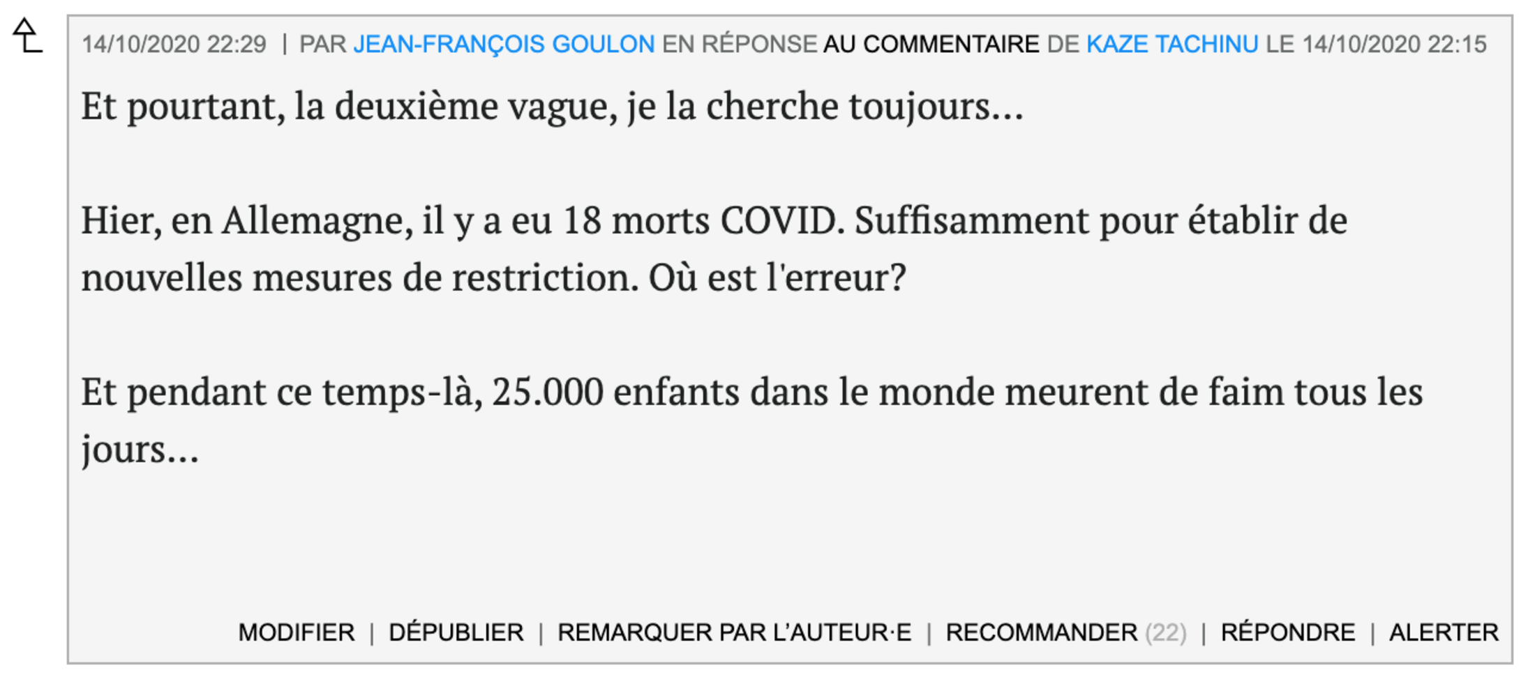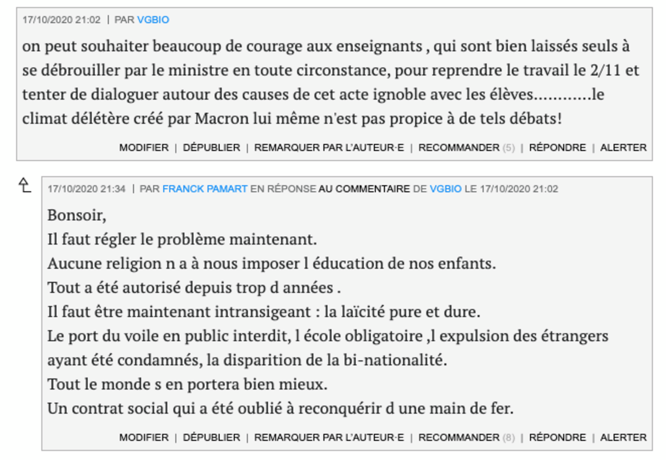 Pour finir et malgré la seconde vague, les attentats, l’islamophobie, ce mois-ci les abonné·e·s ont continué à challenger la modération pour upgrader son efficience, et j’espère qu’avec le Covid, l’islamophobie, l’écriture inclusive, les anglicismes, je vais me faire insulter. La modération a besoin de travail !