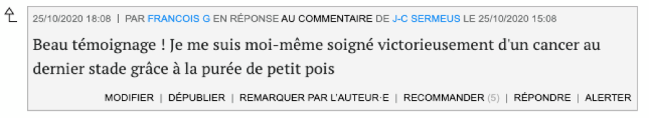 On cherche un remède miracle, si ce n’est la javel, si ce n’est l’hydroxychloroquine, alors peut-être la purée de petit pois ?