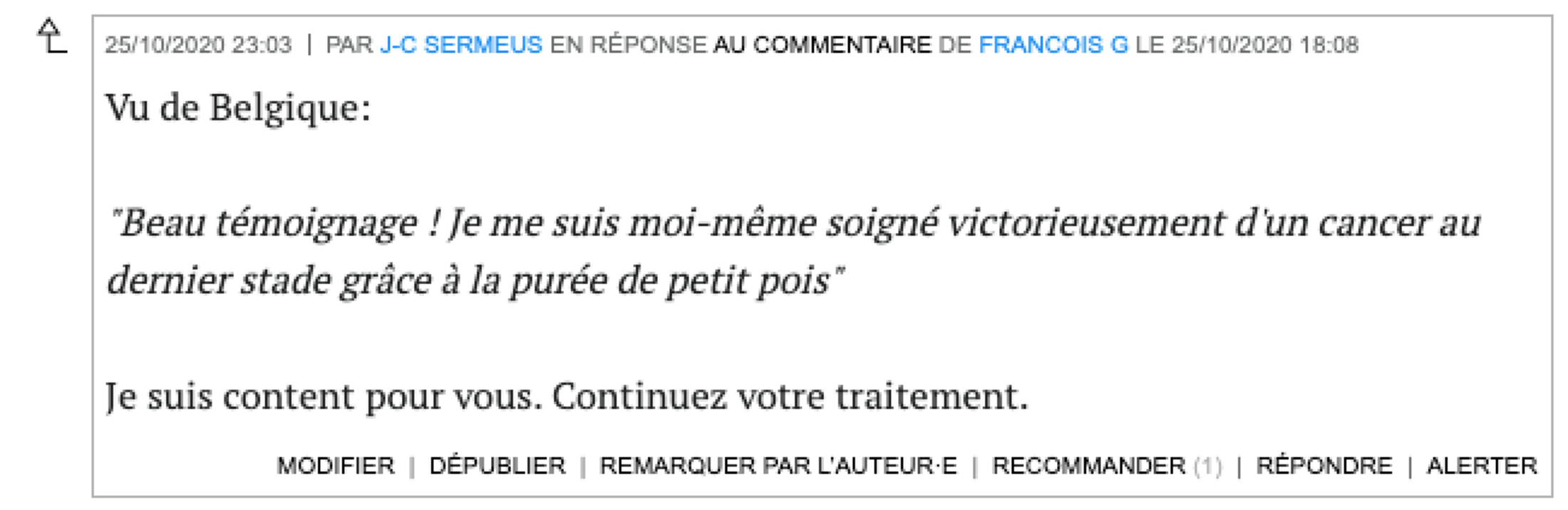 L’objectif de ce rendez-vous mensuel : mettre en avant les commentaires des lectrices et lecteurs sur les sujets qui ont occupé l’actualité. Et l’actualité a été très chargée ce mois d’octobre 2020.
