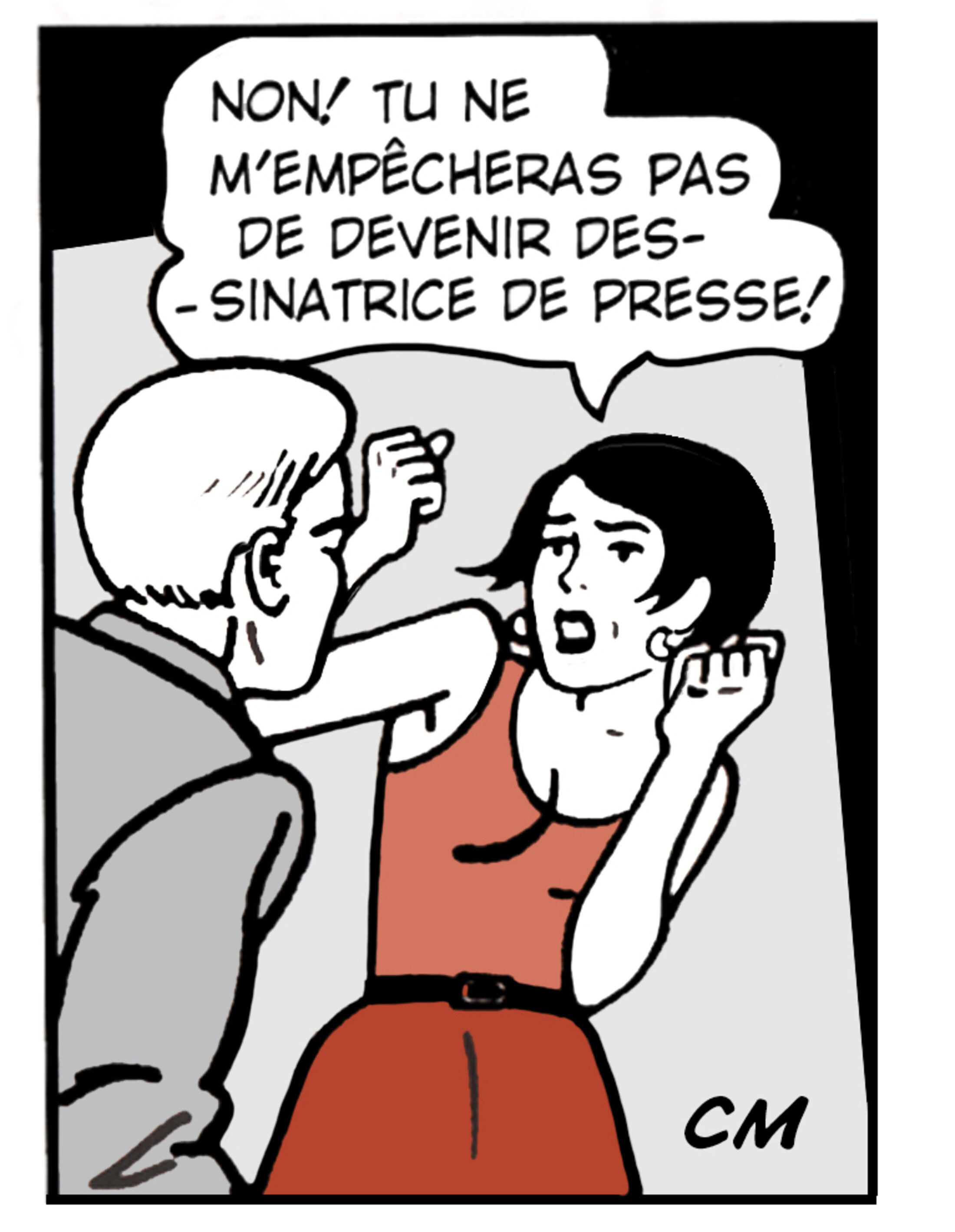 Pour ma part, je n’ai jamais eu, en plus de 40 ans de production et bien que pionnière du dessin de presse politique et de la bande dessinée féminine pour adultes, ne serait-ce qu’une seule exposition de mes dessins dans le cadre du festival charentais ! Cette énorme injustice ne semble d’ailleurs émouvoir personne, ni à la gauche de la gauche ni dans les rangs des féministes, ni nulle part… On peut d’ailleurs s’interroger à ce sujet mais la question semble taboue.