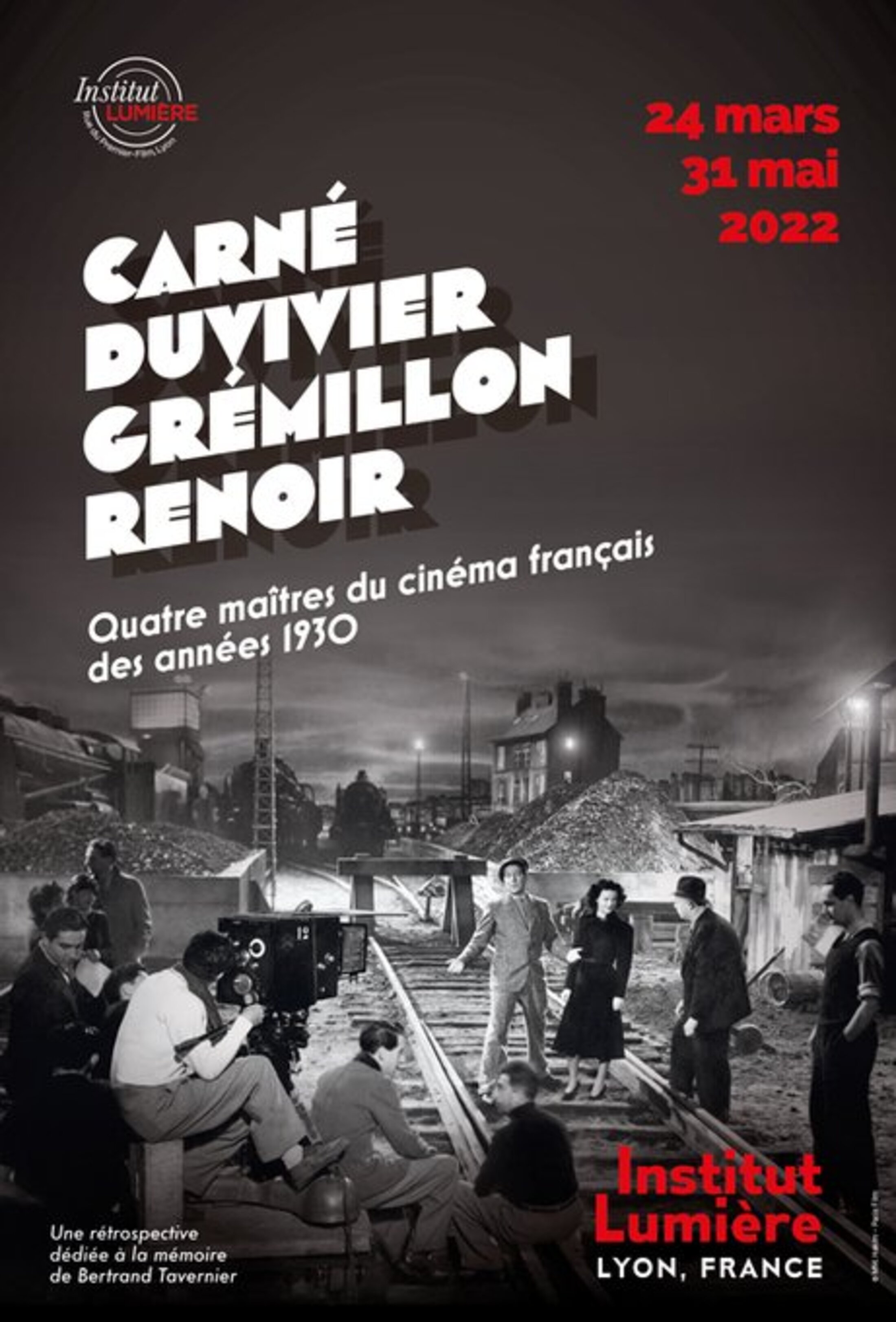 Entre 1930 et 1939, le cinéma français produit en moyenne environ 120 films par an, et la fréquentation passe par exemple de 230 millions en 1931 à 450 millions en 1938. L’Institut Lumière est une cinémathèque installée sur le lieu d'invention du Cinématographe Lumière, Rue du Premier-Film à Lyon. Il rappelle ces chiffres à l’occasion d’une rétrospective autour de quatre maîtres: Marcel Carné, Julien Duvivier, Jean Grémillon et Jean Renoir. Les organisateurs nous remettent également en mémoire les réalisateurs René Clair, Henri Decoin, Sacha Guitry, Marcel Pagnol ou le météore Jean Vigo ; des scénaristes tels que Jacques Prévert, Charles Spaak, Henri Jeanson, Jean Aurenche… des interprètes d'exception comme Arletty, Françoise Rosay, Viviane Romance, Mireille Balin, Raimu, Harry Baur, Louis Jouvet, Michel Simon, Carette... C’est l'avènement de Jean Gabin, qui finit la décennie en star internationale. On le voit dans neuf des vingt-huit films présentés du 23 mars au 31 mai lors de ce festival dédié à une époque exceptionnelle. Reconnue comme la meilleure époque de l’histoire du cinéma français, lui-même reconnu alors comme le meilleur cinéma mondial.