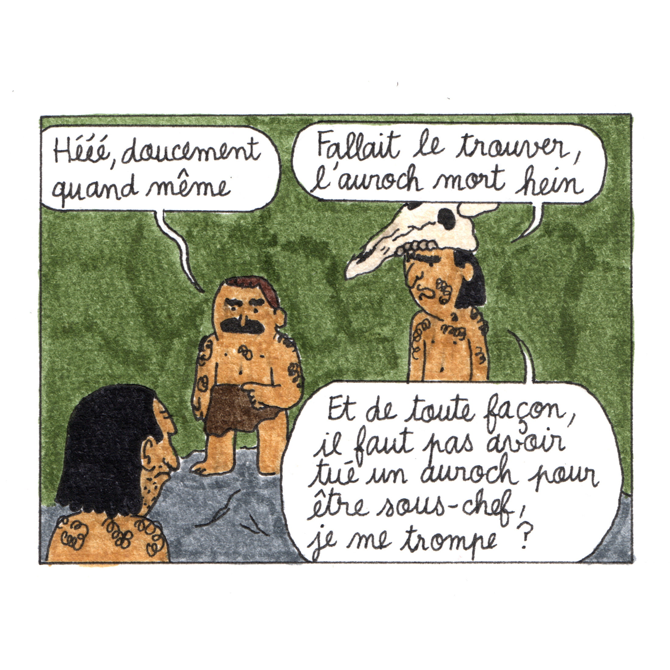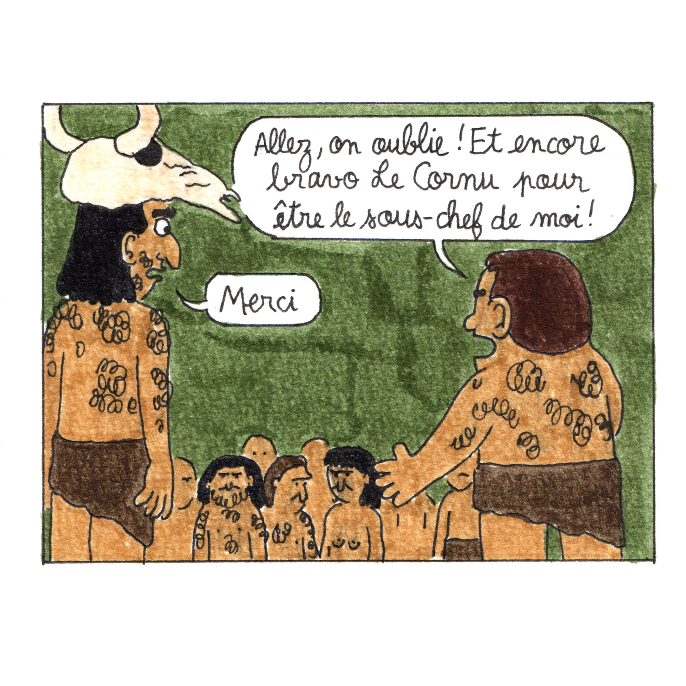 Le grand chef Macrognon nomme Le Cornu comme nouveau sous-chef, mais il y a un problème dans son CV de chasseur-cueilleur....