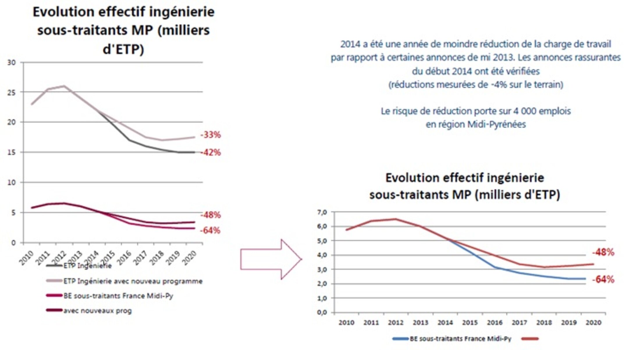 En outre, il fragilise artificiellement un secteur qui pourtant a des carnets de commandes remplis. En effet, n’ayant plus d’avenir dans cette filière les salariés vont dans d’autres secteurs d’activités, dans d’autres régions. Ils ne seront plus là pour construire le prochain avion d’Airbus. Les jeunes diplômés des écoles prestigieuses de l’aéronautique n’ayant aucun avenir dans la filière, partent à l’étranger au terme de leurs études.