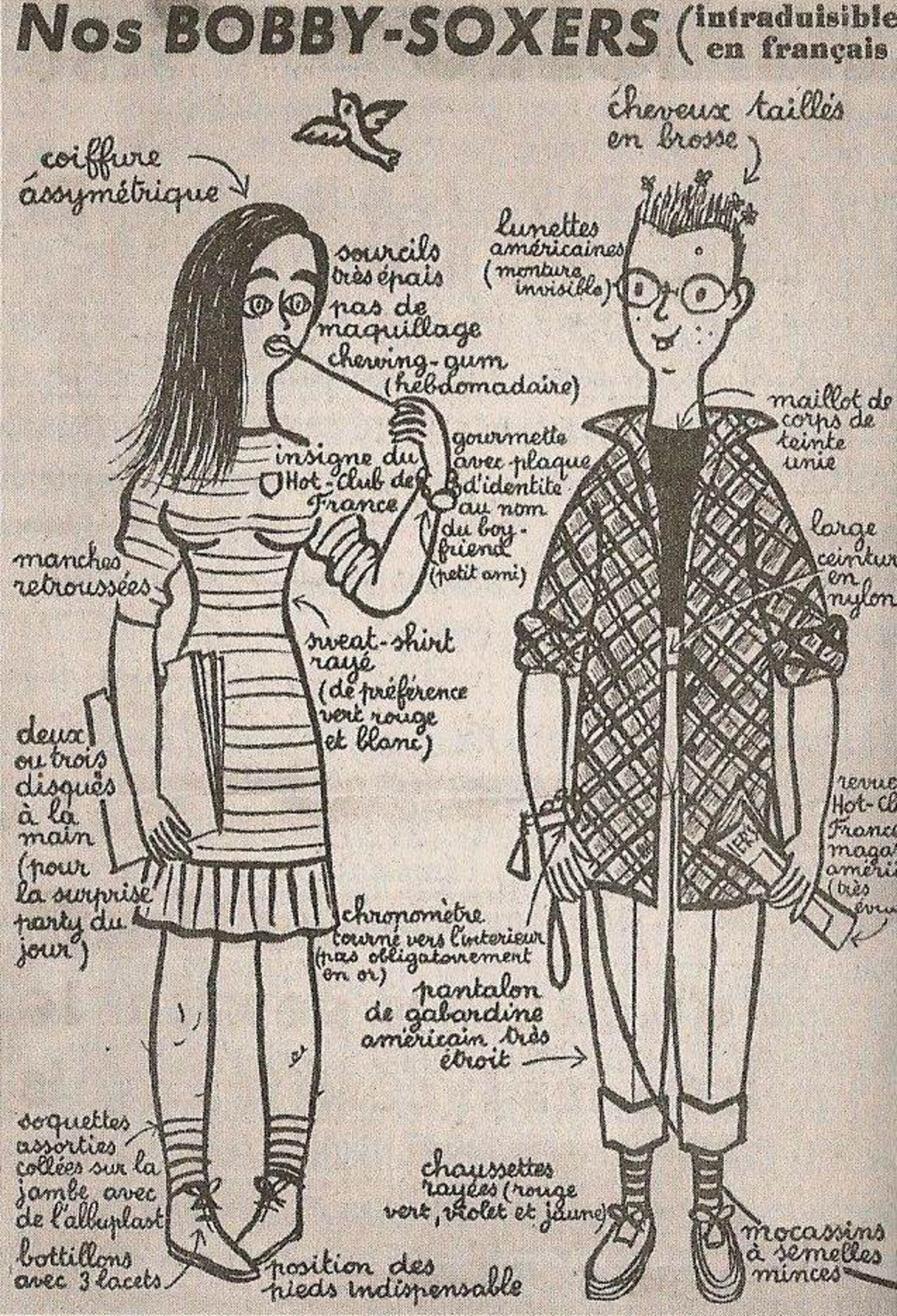 C’est une véritable faune que décrit Boris Vian, avec ses rituels, ses codes, ses mythes, ses icônes. Il ressuscite une atmosphère, l’ébullition artistique et existentialiste des années 50. Il pastiche les articles de journaux de l’époque, croque, brosse et détaille, entre dérision et nostalgie. Lorsque Vian donne des dates, c’est pour évoquer des lieux célèbres du quartier, « la maison où Napoléon naquit en 1636 et la première pierre angulaire de la Bastille, Bastille qui fut elle-même transportée ultérieurement place de la Bastille et détruite au cours des incidents du 6 février 1934 », ou de grands évènements restés dans les mémoires (la mort de Voltaire sur le quai qui lui donna son nom, celle de Racine, assisté par Huysmans…). Chaque page est un régal. Celle qui dresse le « signalement de l’existentialiste » et son « emploi du temps », par exemple :