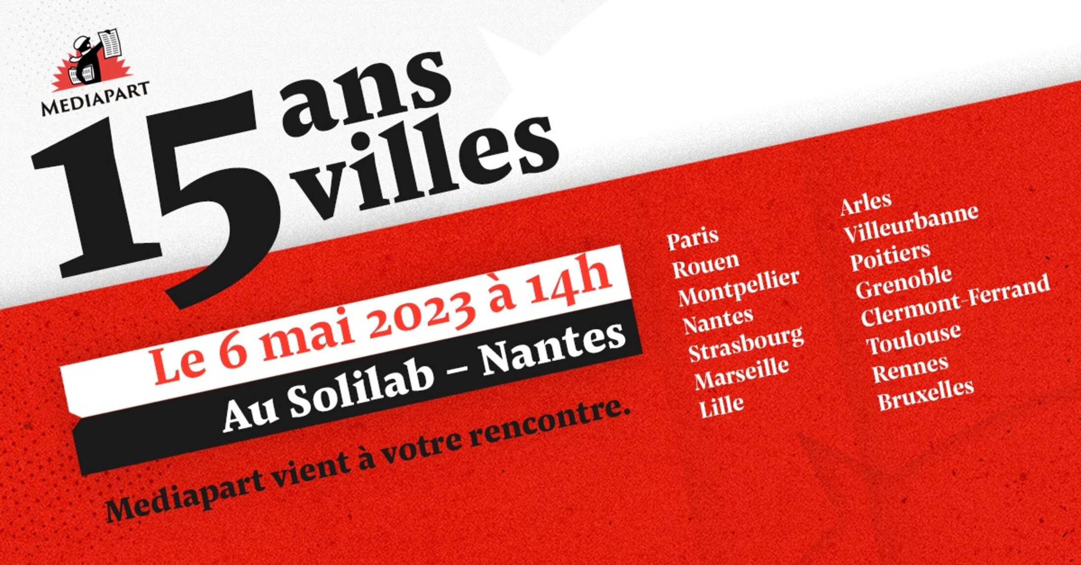 À l’occasion de son quinzième anniversaire Mediapart organise 15 grands rendez-vous avec le public dans 15 villes différentes. « Sans Mediapart, vous n’auriez rien su » : ces rencontres se feront à cette enseigne, rappelant combien nos enquêtes ont révélé et continuent de révéler des réalités qui, sinon, seraient restées enfouies, cachées ou étouffées.