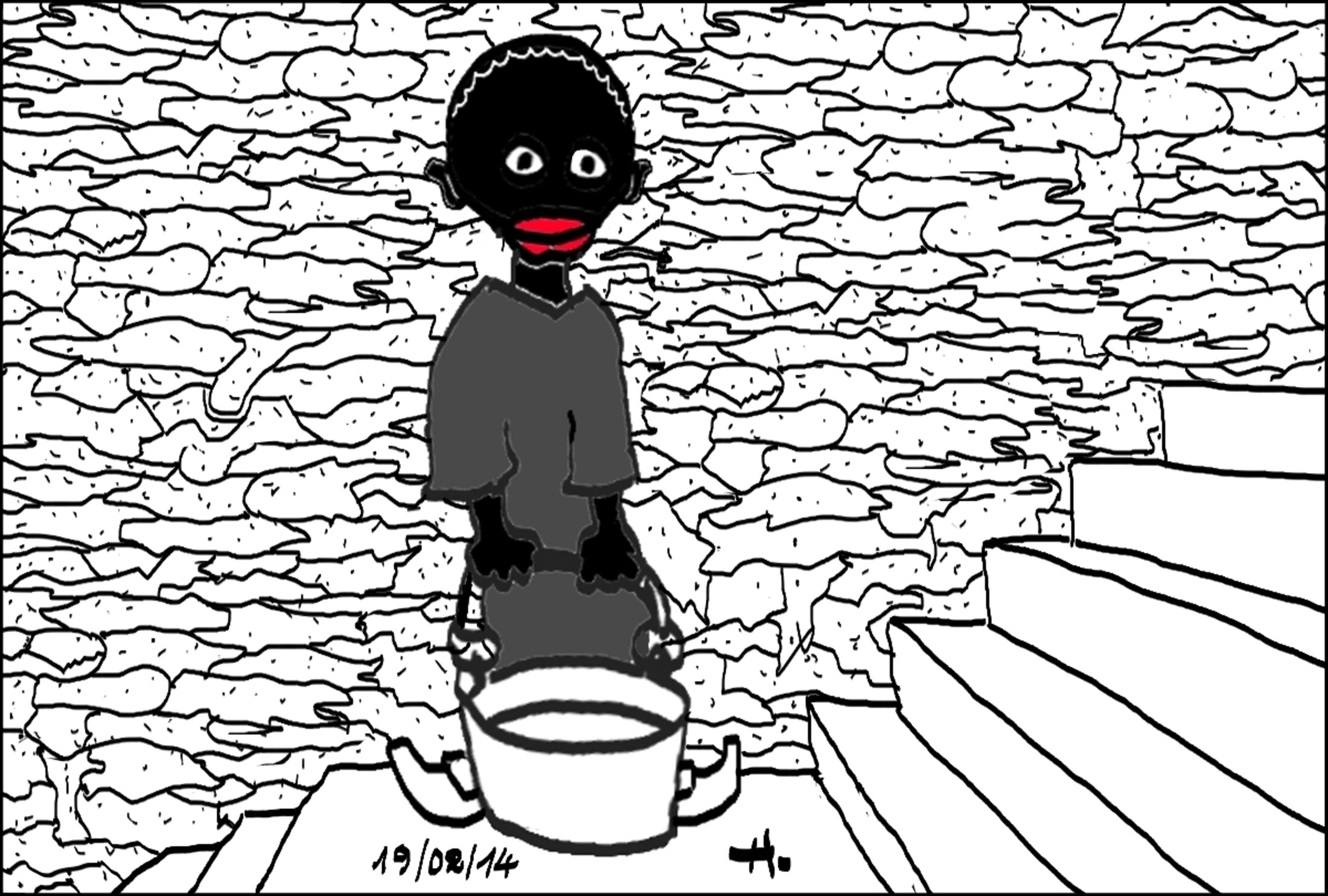 Les lèvres grossies et rougies comme les yeux ronds et exorbités, le corps racorni pour afficher une représentation de « petit nègre », le corps bedonné en ce qui concerne la femme Noire, en constituent la fixité dans cette persistance des représentations coloniales ; ces stéréotypes raciaux, rappelons-le, s’employant à mieux grandir et embellir le Blanc, très loin d’une objectivité de base et de l’esthétique réelle Noire.