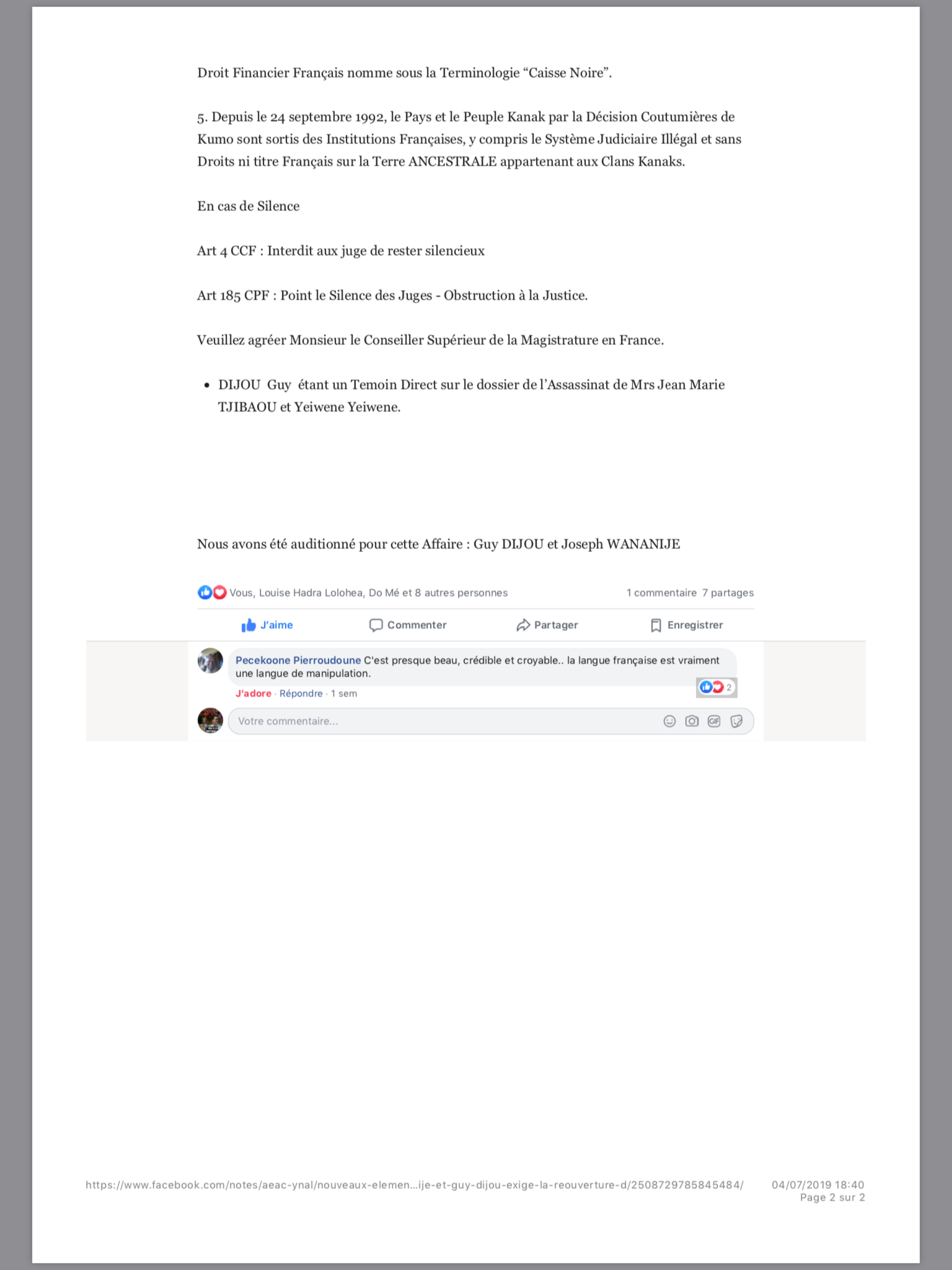 + L’Affaire Yvan Wamytan, inquiété par la justice illégale Française pour Couvrir les manquements d’un Agent de la Police Municipale, au devoir et à l’Obligation de Sûreté, de Sécurité et de prudence imposé par la loi et le règlement, manquements qui ont conduit M Tauarii Kelson à une mort certaine la nuit du Dimanche 9 juin au lundi 10 juin 2019. (Police municipale de Nouméa et du Mont-Dore)