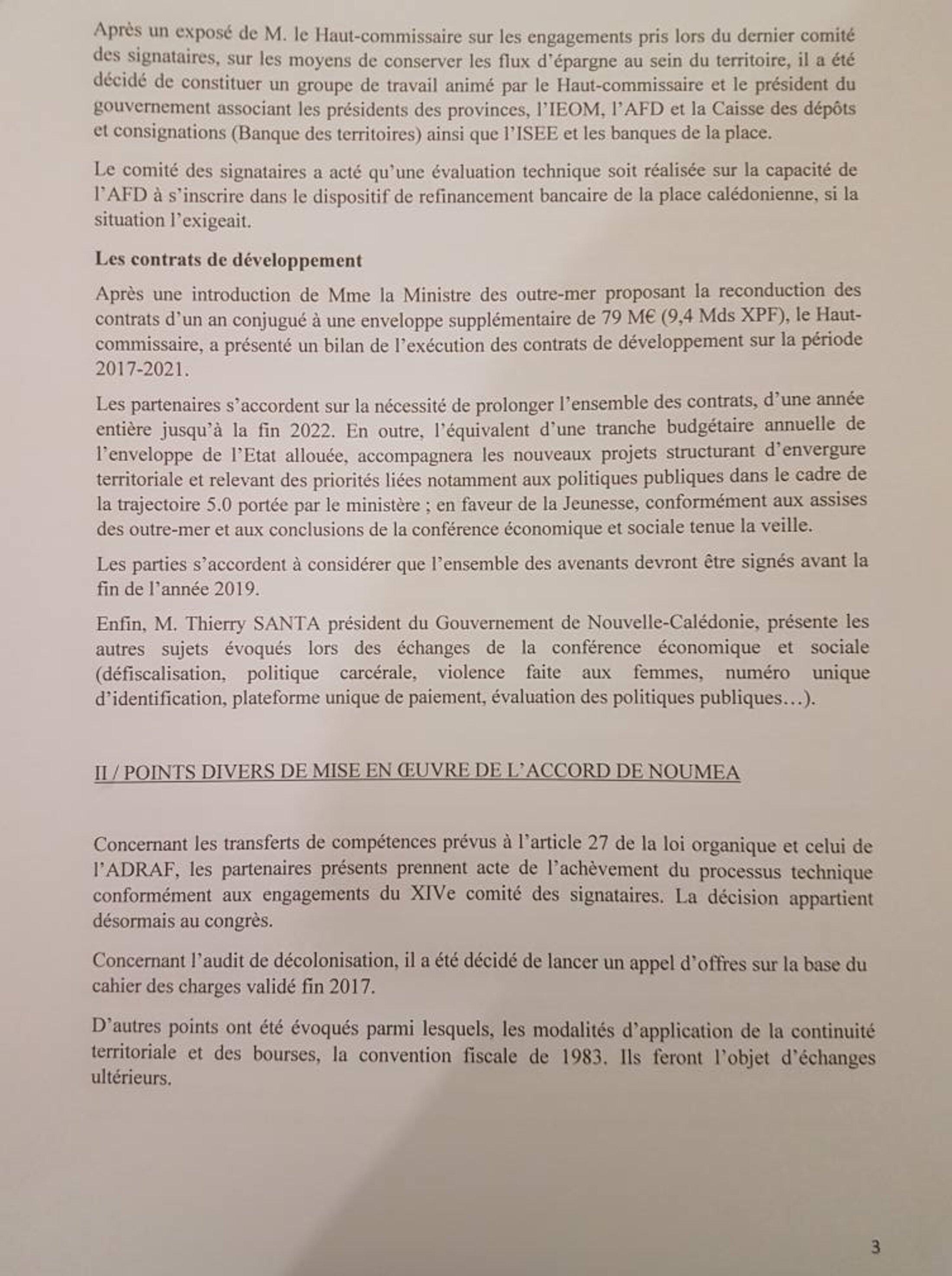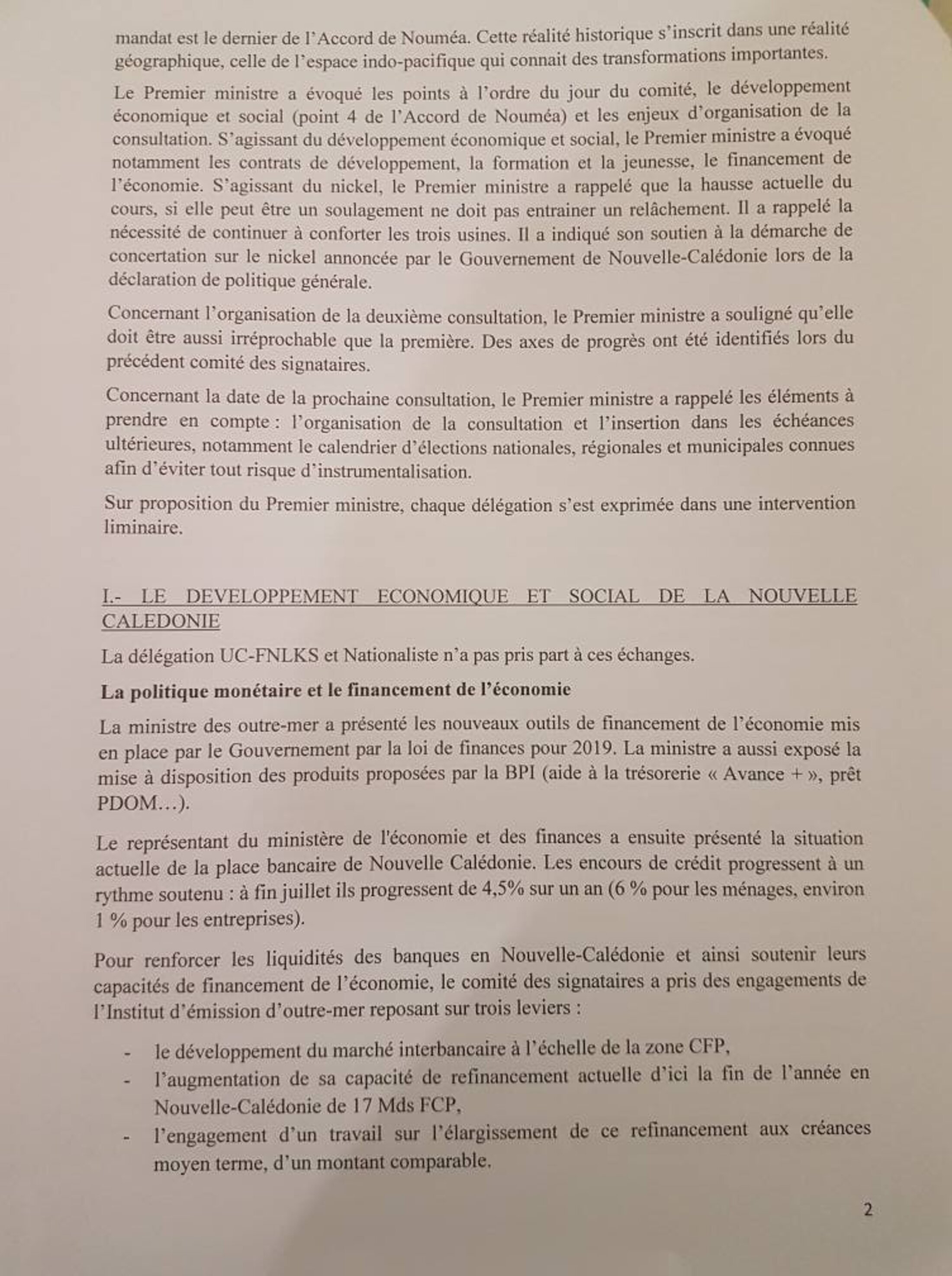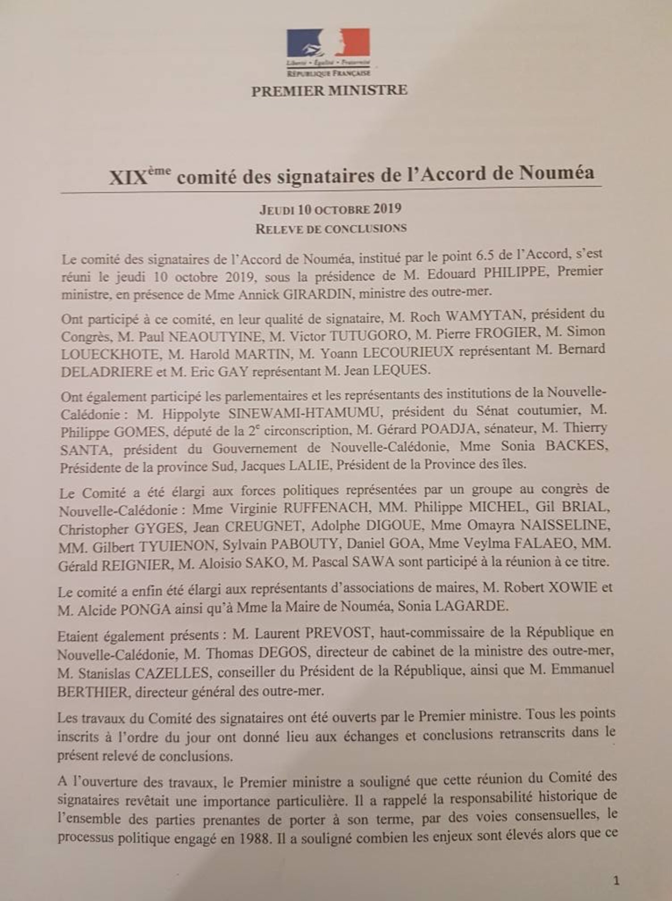 Dans son ultime mandature, l’Accord de décolonisation de la Nouvelle Calédonie à laquelle s’est engagée la République Française a réuni son 19ème comité des signataires le 10 octobre autour du premier ministre Édouard Philippe. Le texte intégral des dernières mesures liées à son développement économique et à la préparation de la consultation.