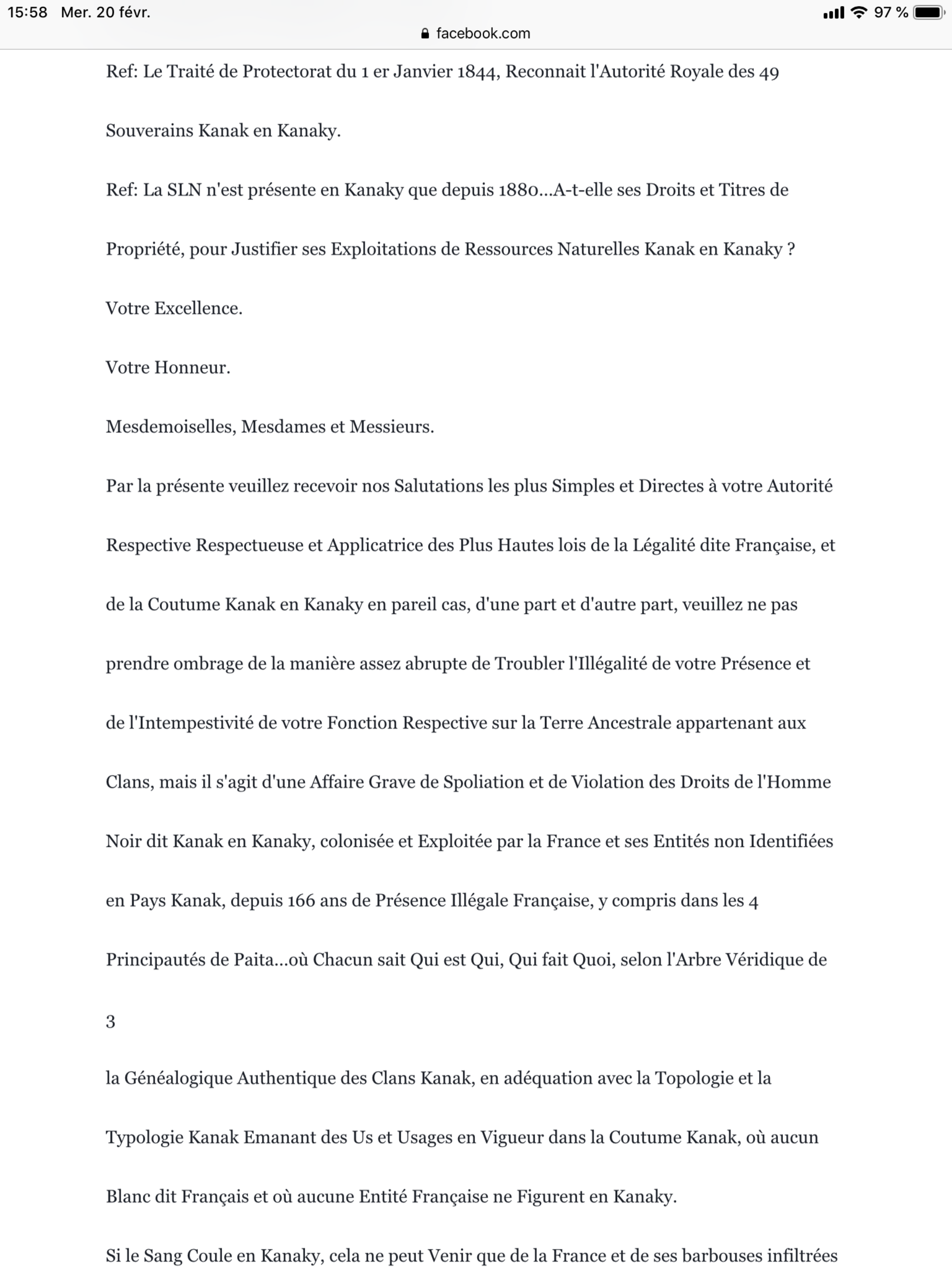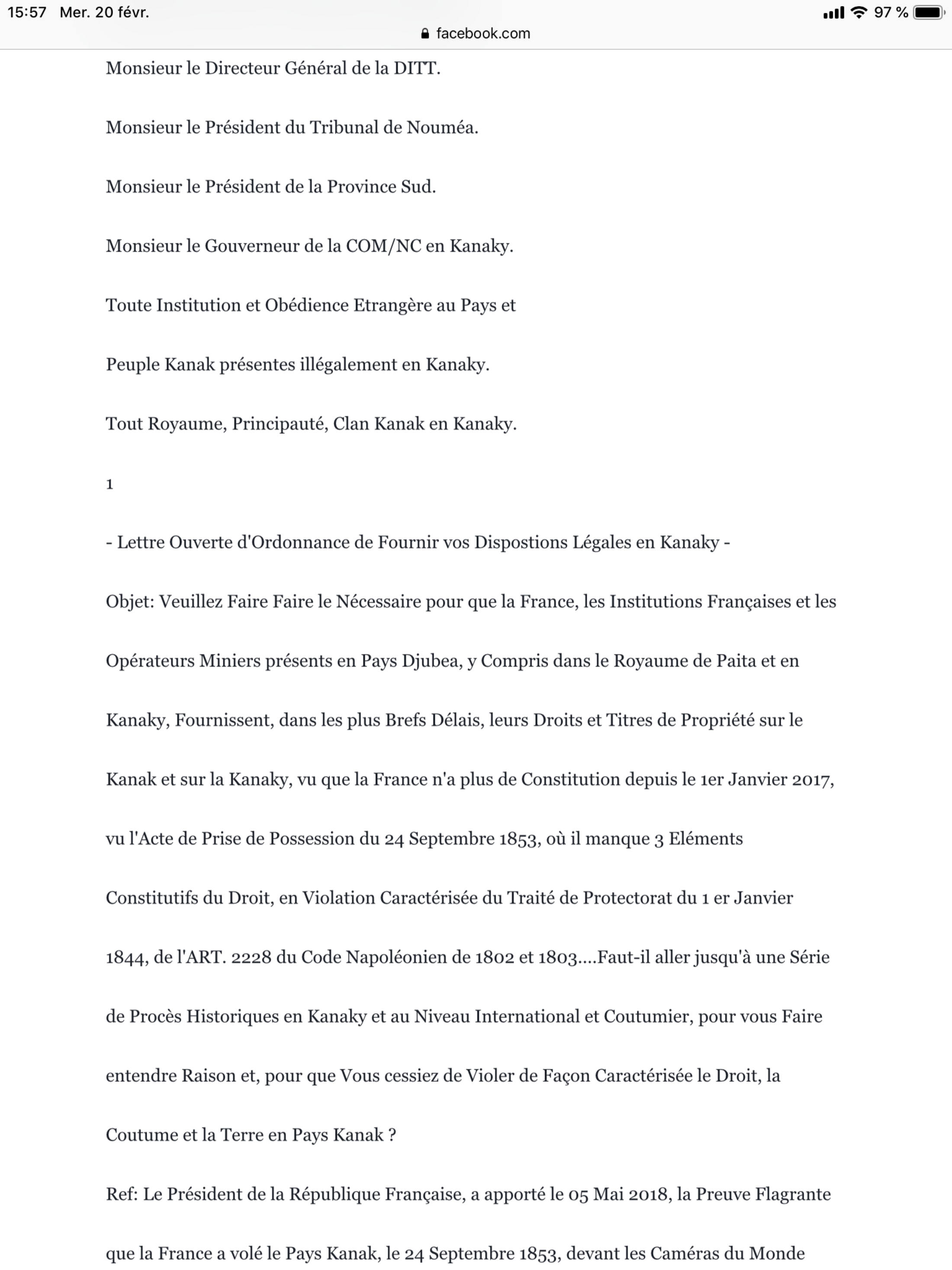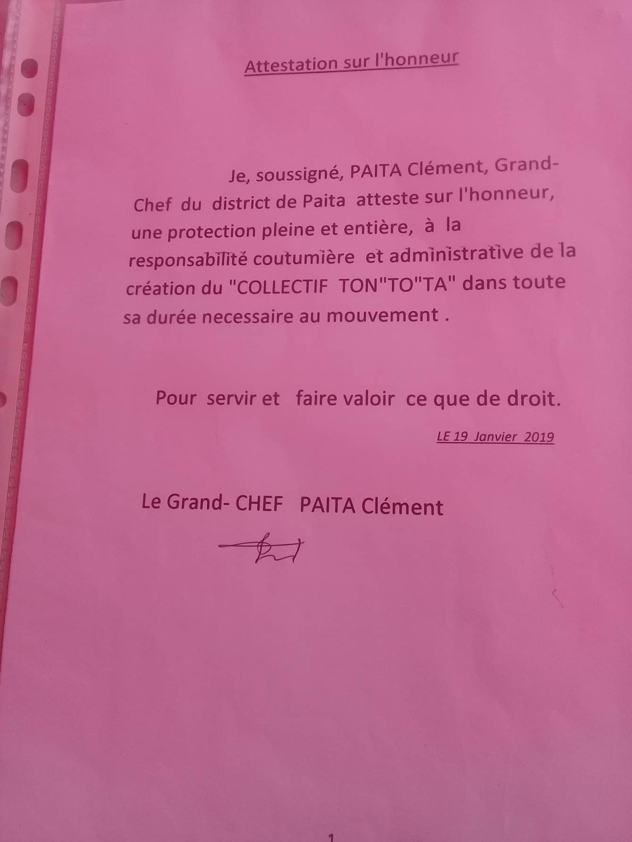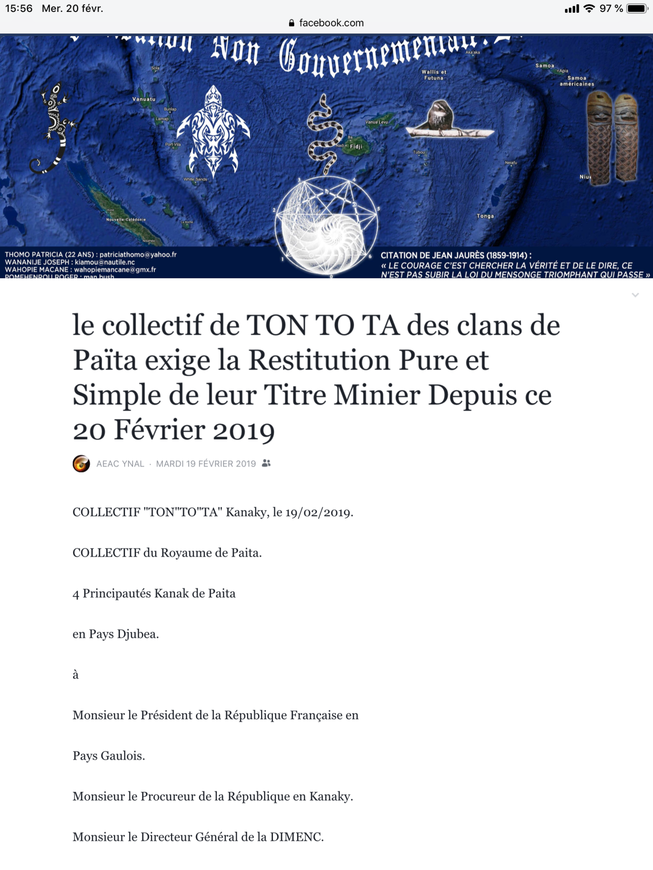 Le collectif de TON TO TA des clans de Païta exige la Restitution de son Titre Minier