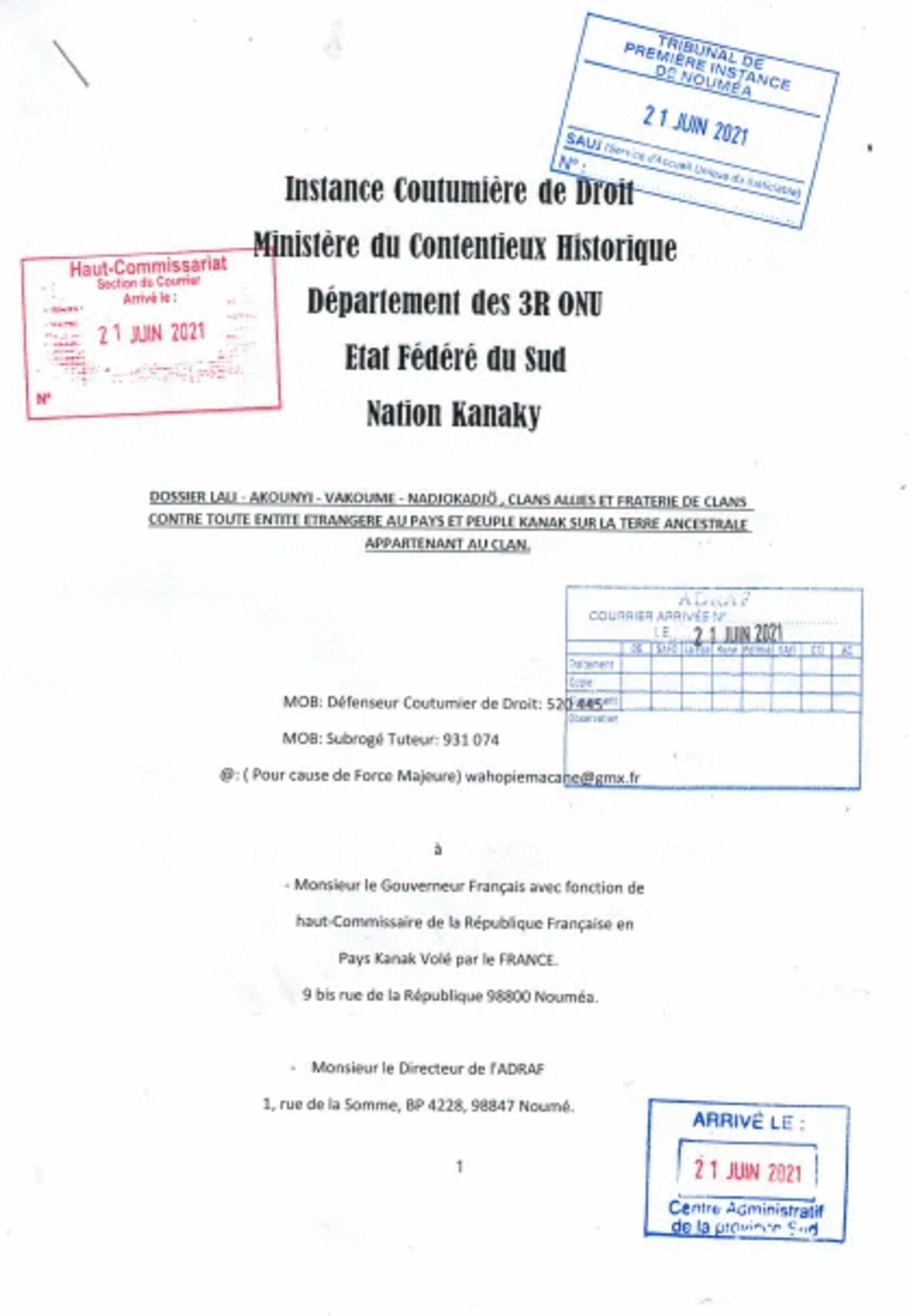 Le Clan du site de la mine de Goro passe à l’acte avec les Défenseurs Coutumiers, les Adjudicateurs de Droit et les Subrogés Tuteurs de l’ONG Kanak ENIANA. Cette démarche juridique historique vise la Province Sud, l’ADRAF, et le Procureur pour Restitution pure et simple de leurs droits et titres miniers. Rdv le 6/07 à 13h sur Radio Djiido où l’ensemble du pays et les autres Clans seront informés.