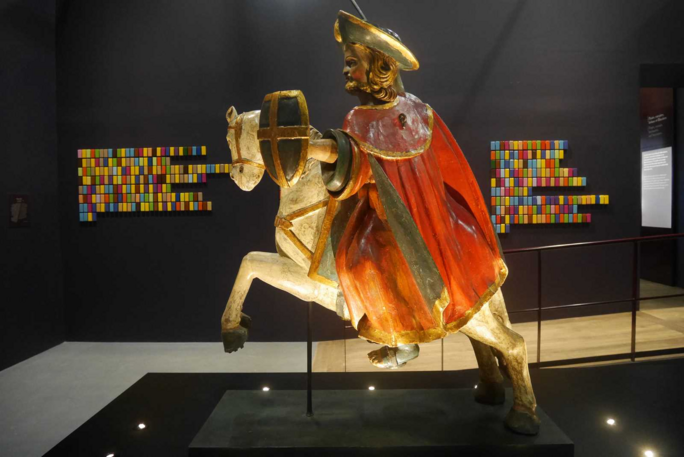 ⇒ des salles dont le seul aménagement est composé de sculptures, qui en trônant dans le vide muséal, déclasse la portée de l’information ... Ainsi, des têtes d’esclaves sculptées, enchaînées les unes aux autres (photo 9), suffisent à traiter de la traite, ou encore la sculpture d’un cavalier européen suffit à traiter de la conquête du nouveau-monde (photo 10) !